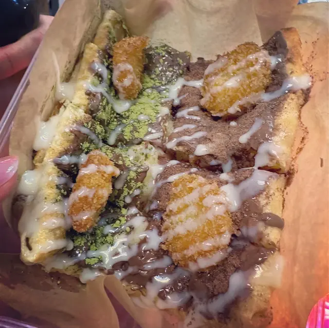 熱辣辣香蕉煎餅 eat.play.travel等级32023-08-05226 浏览 关注 好耐冇黎過葵廣行街食嘢,見又開咗唔少小食店,當然要試吓啦!揀咗呢間香蕉煎餅,因為我自己未食過。首先要揀醬,有榛子/阿華田/朱古力/煉奶/花生廚師發板(+$2)法式焦糖(+$2)之後可以加$2再加配料:彩針/阿華田粉/美錄粉/抹茶粉或加$3:炸蕉/大粒棉花糖/Oreo碎碎我揀咗榛子醬+美錄粉+炸蕉等10 分鐘就有得拎。啱啱整好熱辣辣食真係超好食!配榛子醬好夾,感覺同食crepe差唔多。加粉我就覺得可以skip,應該冇咩太大分別,係味道豐富D D。炸蕉我覺得係必食既,價錢唔貴,炸得好好!炸皮又薄又脆,入面蕉肉好淋,口感好特別!…查看更多以上食记乃用户个人意见 , 并不代表OpenRice之观点。赞好分享熱辣辣香蕉煎餅 蕉積妹 https://s.openrice.com/QrLT080nB00检举 张贴 评分4味道3环境4服务4卫生3抵食用餐途径堂食