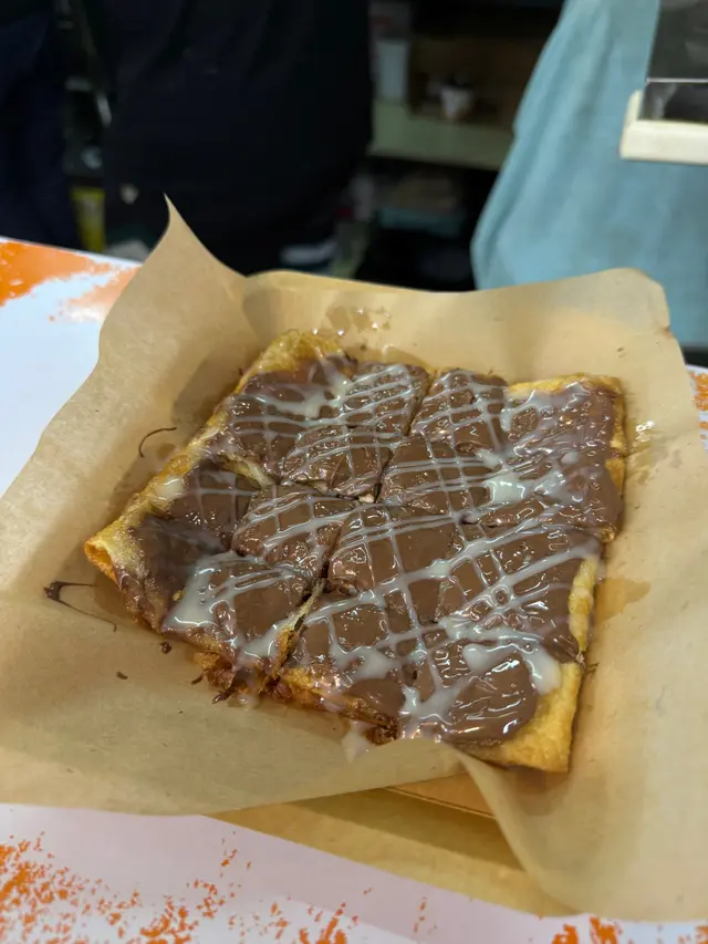 蕉積妹的榛子朱古力香蕉煎餅點了蕉積妹的榛子朱古力香蕉煎餅, 比想像中好吃太多太多, 好掂。首先我是討厭吃香蕉的, 那種生生茸茸的感覺很奇怪, 但這煎餅是我覺得非常好吃的, 首先蕉味很香甜, 可口, 跟朱古力是出奇的很搭, 我以前是不覺得香蕉跟朱古力味會搭到的, 這個甜品完全推翻我的認知, 原來香蕉做甜品可以好食成這樣。而且原本看到用nutella, 心已經涼了半截, 因為nutella本來都很甜, 甜都我都受不了, 但這並不是目測的nutella, 這個醬並不像nutella那麼死甜, 而是甜度剛剛好, 跟香蕉的香味超配。而且沒有假假的香蕉味或朱古力味, 一切味道都很真實, 又很滋味, 超好食。我們二人吃光都不覺得滯。而且煎餅是即製的, 等了大約10分鐘左右, 很值得等, 因為這種煎餅是我之前沒有食過的, 它很脆口, 像炸過般, 又薄又脆, 中間軟糯, 很綿, 很好吃, 而且一點都不油, 中間還有薄薄的香蕉茸, 好出色, 絕對值得一吃, 不吃香蕉的人都想食完再食, 我就是這樣, 絕對推介。難怪這甜品在泰國那麼受歡迎, 因為在香港之前一直沒有試過, 一試便馬上記住。下次希望再試別的口味。…查看更多