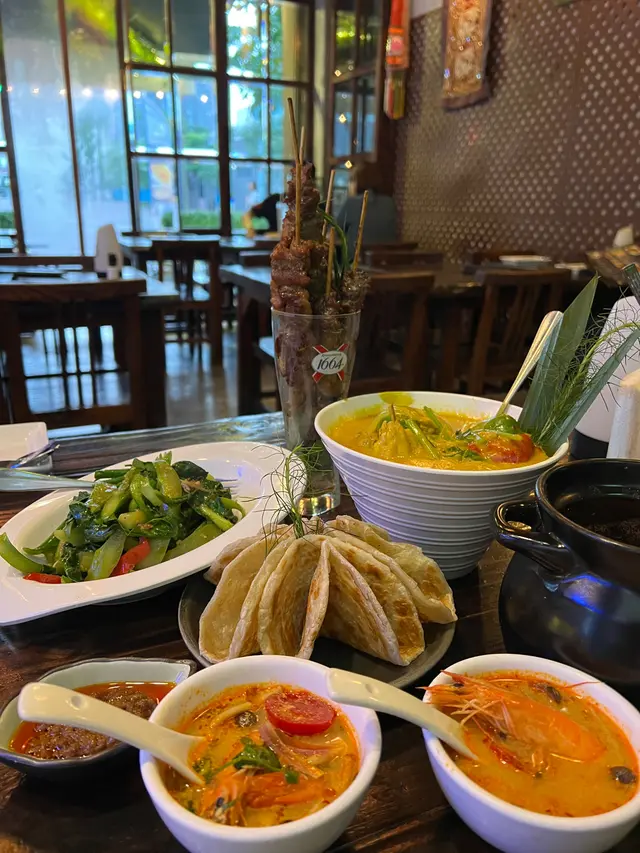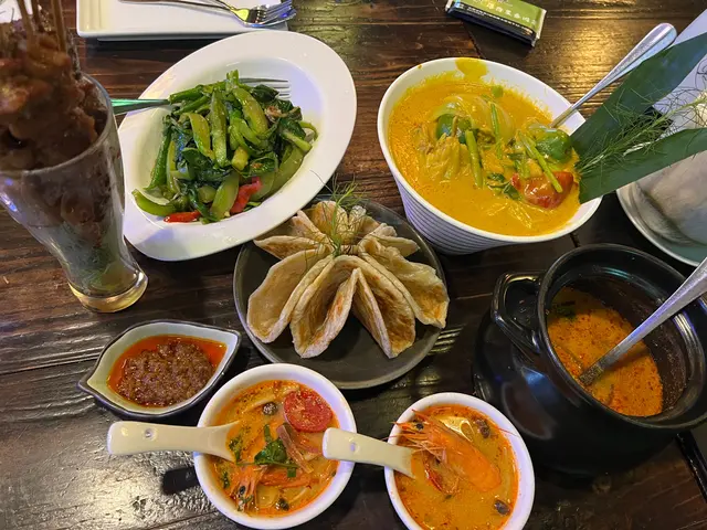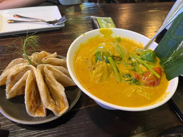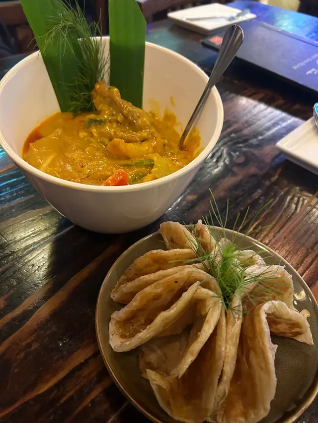 今日朋友聚會,約咗去元朗食呢間泰國餐廳,嚟到門口,餐廳環境佈置感覺好似置身於泰國,坐位有室內和室外,我哋梗係坐選室內啦。天氣炎熱,叫左2杯椰青和青檸梳打, 降吓温先。鮮蝦柚子沙律,酸甜爽口,柚子肉都不少,十分醒胃。黃咖喱雞味道不錯,不覺太辣,好重咖喱椰香味,選擇用新鮮雞,雞味十足。同幾塊烤餅一齊吃簡直系絕配,咖哩汁好味到可以當湯飲埋。泰式燒豬脾仔,表面有層叉燒蜜汁,食落啖啖肉,感覺Juicy,不覺乾硬,配埋泰式 酸辣醬,好味。馬拉盞炒通菜,很有鍋氣,好食。查看更多
