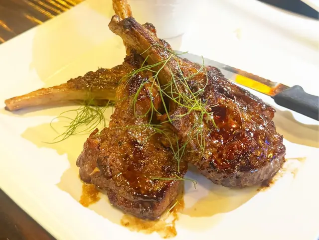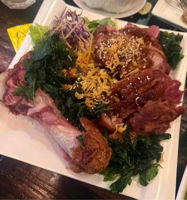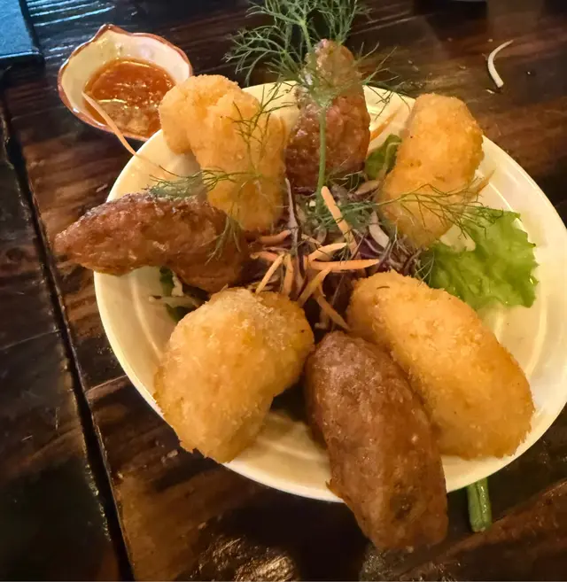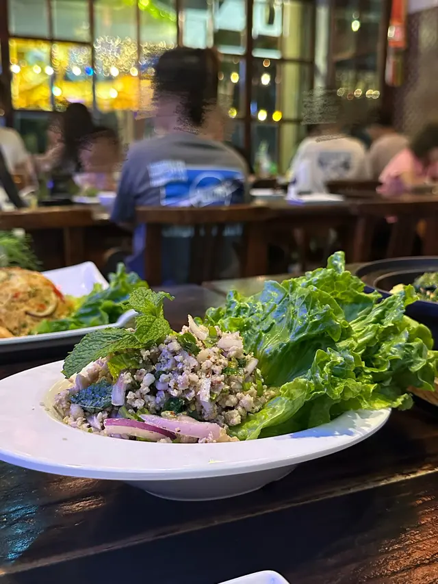 元朗出名多好嘢食今日收工去咗試呢間泰國餐廳裏面裝修幾特別 有少少酒吧嘅氣氛-泰式燒羊架羊架七至八成熟左右 超juicy唔會好酥但有羊既香味鍾意食羊既朋友可以一試-肉碎生菜包食泰國嘢當然唔少得生菜包呢度生菜包味道唔錯,唔會太辣肉碎大大粒比較有咬口唔會太碎-馬拉盞炒椰苗馬拉盞炒椰菜苗係最香 同朋友好快就食晒雖然紅紅地,但唔會話好辣 -青咖哩雞+薄餅最後煮食我哋揀咗青咖喱雞再配薄餅青咖喱味道好正宗同我喺泰國食嘅香料味道一樣而且呢個青咖喱就真係有啲辣醬汁好多用嚟送飯一流😻薄餅即煎脆卜卜熱辣辣 👍🏻👍🏻餐廳開得比較夜收工過嚟同三五知己傾吓偈飲下酒都唔錯見到餐牌仲有好多唔同款嘅Cocktail 下次可以再嚟試吓🫶🏻查看更多
