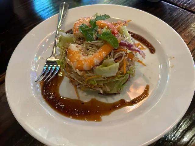 早幾日去咗元朗接朋友放工順便食晚餐~佢帶咗我去咗間環境好放鬆嘅泰國餐廳開餐🍴吊燈裝潢好有特色~而且有戶外及室内座位可以選擇~啱哂同朋友嚟邊傾邊食放鬆吓心情❤️.✨甜柚鮮蝦沙律 $108清甜鮮柚💦+彈牙鮮蝦🦐+清新沙律菜🥗~開胃口之選!!.✨肉碎生菜包 $108爽脆生菜包蓋少少辣嘅惹味肉碎~經典泰式滋味😋😋.✨馬拉盞炒通菜 $78鑊氣十足🔥通菜卻仍然保持青翠~加上微辣馬拉盞非常惹味👏🏻👏🏻.✨青咖喱雞 $118✨薄餅 $55嫩滑雞肉🐔+多種蔬菜🫑~加上汁料甜甜哋又惹味~用酥軟薄餅沾上咖喱汁同食好好味🫶🏻🫶🏻.✨咸檸七 $38✨青檸梳打 $38🍸🍹冰凍清爽!解暑一流!!.✨加一服務費查看更多