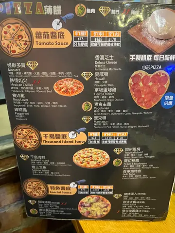 今日约咗fd做运动🏃🏻做完运动就顺便喺附近揾地方食饭呢间pizza喺土瓜湾地铁站行一阵就到非常就脚 喺门口望咗下见到好多优惠都几抵食二话不说就入咗去先算叫左个一人餐再加一个意粉同炸鸡share餐汤系罗宋汤 好多配料 味道啱啱好 酸酸甜甜一人餐pizza拣咗夏威夷薄批唔好睇佢细细件得两块 但其实配料都好多好快就食完 仲想追加😂是拉差辣椒酱辣味炸鸡炸鸡大大件 脆皮多肉汁配埋是拉差酱酸酸辣辣 够晒惹味麻辣味烤鸡,虽然冇脆皮但系同麻辣酱都好配合 一样咁香口鲜茄肉丸炒意粉 肉丸份量好多 茄汁比较干身但系最近食得清淡 偏好少汁所以呢个都唔错巴斯克焦香芝士蛋糕其实本身都已经八九成饱但系都系忍唔住叫多个芝士蛋糕做甜品蛋糕软滑 芝士味浓食完之后十成饱,非常满足整体嚟讲食物OK,种类多,价钱亲民估唔到佢仲有All day Breakfast 仲有堂食满$100 就88折、加$1件鸡等真系超抵 咩都有啲 又唔贵 食得好开心下次会再嚟…查看更多
