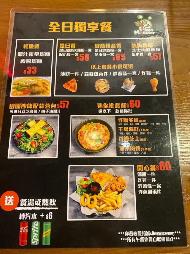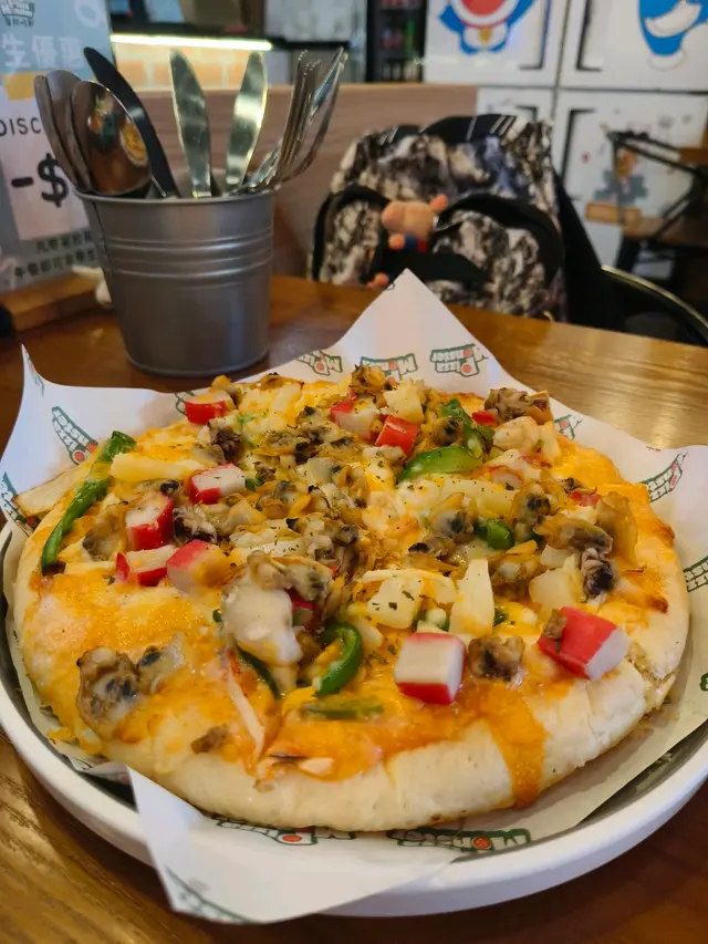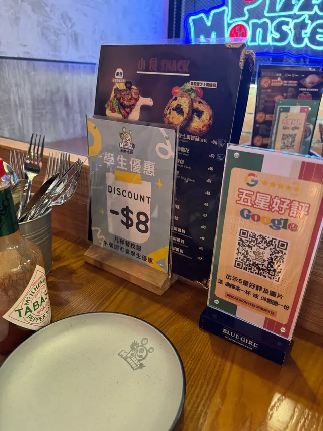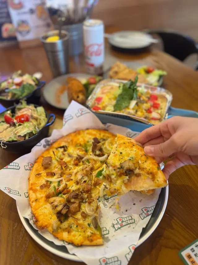 好開心聚會😁食住薄餅🍕意粉🍝雞翼🍗飲住汽水🥤𣈱談旅遊心得😝交換旅行手信一流🤪🍕 怪獸多寶 (細) $73識食一定揀餐廳嘅招牌熱門菜式😊我就最鍾意多材料豐富嘅Pizza啦😍所以呢個啱晒我🥰配料有洋蔥丶青椒丶辣肉腸、火腿丶蘑菇丶菠蘿、牛肉同豬肉🤪Pizza 控表示好滿意呢個Pizza😋因為標榜住手製餅底😉每日新鮮製造🤩仲要係心形pizza有心思😘🍝香蒜大蝦炒意粉(無汁) $83冇諗過冇汁嘅意粉都可以整得咁好食🤤大蝦鮮嫩加上美味香蒜醬汁😏再加上出色嘅蔬菜配料🫢例如青椒同粟米🤭仲有一些沙律菜🤠口感豐富😬🍗BBQ雞翼 4隻半份 $36雞翼方面😀 雞翼都有多款口味嘅選擇😝今次我哋揀左BBQ雞翼😉雞翼整得有啲香脆🤩但係我就覺得BBQ醬汁略小😶如果BBQ醬汁多嘅話就夠晒入味加惹味啦😎🥤忌廉汽水 跟餐 +$5夏日炎炎飲住汽水🥤食件薄餅🍕食一口意粉🍝同埋雞翼👏絕配絕配🫶🧁🍰🎂切餅費每位$10餐廳都好歡迎大家帶一些甜品糕點去餐廳進食 👍無論係蛋卷或者係小小嘅蛋糕仔🍰都係切餅費每位$10👍所以我覺得下次帶個生日蛋糕同朋友慶祝生日也是唔錯嘅選擇哦✌️📍 薄餅怪獸 (新蒲崗)🔍新蒲崗仁愛街48號地舖…查看更多