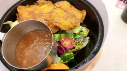 酥炸豬手配茄汁意粉