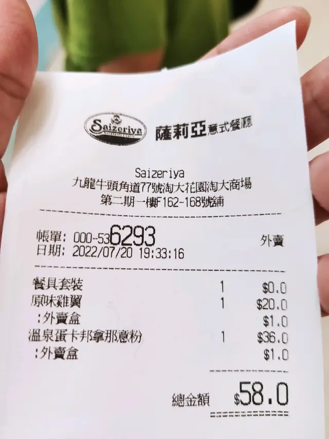 同屋企人嘈咗兩句結果佢唔煮唯咪有自己買卡邦尼食溫泉蛋卡邦尼不嬲都有食開已經加價去到40蚊一盒外賣盒又要各自加一蚊薩莉亞已經不如當初咁抵食喎但係都係瘋狂多人等位同埋好多人買外賣點樣都係畀pizza hut嗰啲平嘅仲要平好多 加價極都係性價比好高味道都好ok咁嘅價錢都冇咩好挑剔自己煮使再整都係要咁樣不過份量就多好多意粉今次偏硬身雞翼廿蚊原來得四隻又加咗價5蚊一隻不過都平過譚仔嘅都係正常嗰隻牌子有得買嗰隻雞翼啦cp雞翼嘅味道間唔中冇屋企飯食都可以買嚟食下查看更多