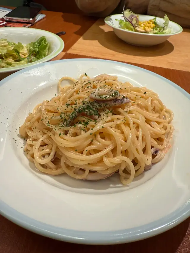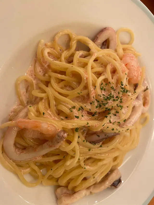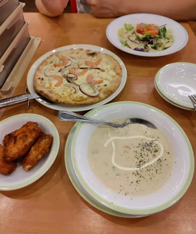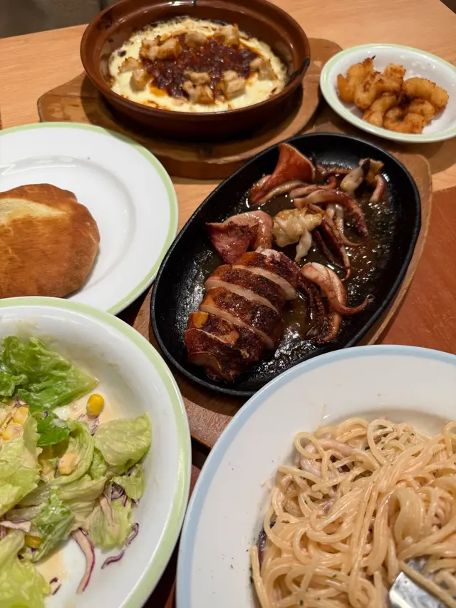 呢排返工有啲壓力生活又唔太開心所以睇吓邊度可以飲下酒午市可以搵到酒飲其實都難仲要平平哋11:30到 周圍都冇乜人可以自由揀位坐之後開始睇吓有咩食再用電話叫估唔到薩莉亞咁平成大枝白酒或者氣泡酒都係$48一大枝甜蝦沙律 個汁溝到啱啱好加埋大量甜蝦天時暑熱 食個凍冰冰嘅沙律非常開胃明太子海鮮意粉味道鹹鹹鮮鮮醬汁Creamy 估唔到個意粉咁好食辣汁蘑菇西蘭花出菜熱辣辣辣得來口感豐富呢排都好少食薩莉亞原來有酒飲 真係會多啲嚟幫襯而且性價比好高 平價之選超級市場買支酒都冇呢度咁平而且仲要有埋隻冰杯如果呢個價錢有咁嘅享受真係非常之抵…查看更多