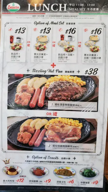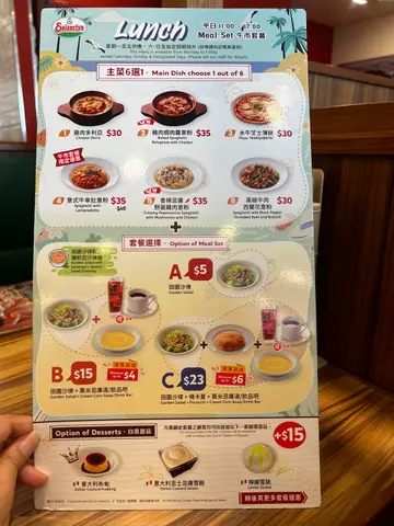 店名:萨莉亚地址:香港柴湾小西湾道10号小西湾广场4楼402B号舖1.周打海鲜汤 $14海鲜汤足料,有加上忌廉系面,但汤未足够煮开,会部分呈现粒状2.意式菠菜伴烟肉 $20因为系白灼关系,如果只系单点会无咁好食,所以我会加配埋个香焗白汁菠菜,可以沟埋一齐食用👍👍3.香焗白汁菠菜 $20因白汁较多,如果唔想浪费,可以叫多个意式菠菜伴烟肉,沟埋一齐食用,咁就唔会浪费4.烟肉菠萝薄饼 $34薄饼系薄批,仲可以保持水准,有芝士系面,溶化嘅芝士加分不少5.温泉蛋卡邦拿意大利粉 $40水准一般,意粉水分较多,加埋温泉蛋,有三分一只碟系水分,建议温泉蛋另上6.墨鱼汁意大利粉 $35意粉水份也是较多,但配料有蒜蓉及鱿鱼圈,配塔搭上较为好吃,令可以选择另一个甜虾墨鱼汁意大利粉,会有多一种配料7.原味鸡翼八只 $38鸡翼还是好好食,时间火喉拿捏得好好,皮脆肉嫩,还有肉汁添,极度推荐👍👍👍…查看更多
