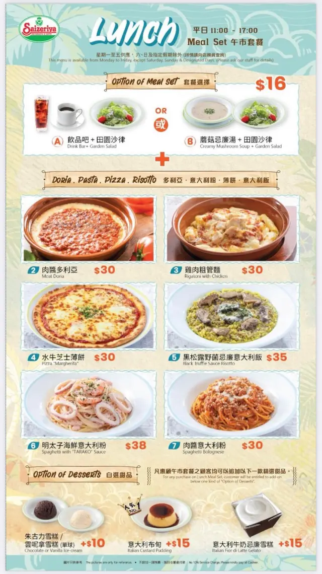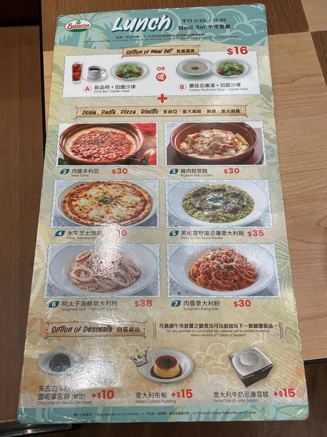 薩莉亞意式餐廳 (大本型) (油塘) 网址: https://s.openrice.com/QrLS0YyK4W0 地址: 香港油塘高超道38號大本型G樓G09-G10號舖