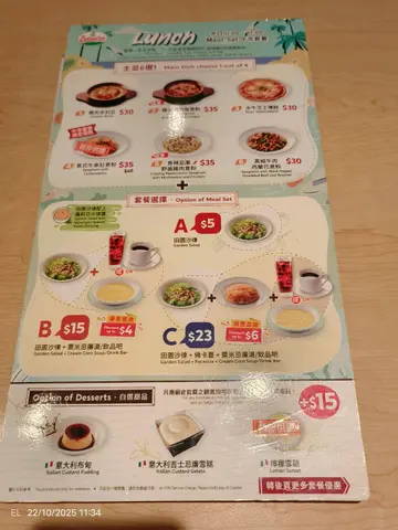 呢间我同屋企人成日去嘅平民意式餐厅。环境几大下,人流超多,所以要预先早去拿位。价格比起其他餐厅系非常低,而呢个都系佢嘅吸引之处。起16/01嘅时候走左去,除左其他旧品外,我地都叫左佢新品,包括炸鱼柳,猪肋骨,虾海鲜意粉等。食物的确唔错,尤其是猪肋骨弹牙易脱骨。总体而言,食物起预制菜来讲系唔错,尤其是价格的确几低下,非常吸引。推荐同亲友起唔想食太贵嘅时候去食。