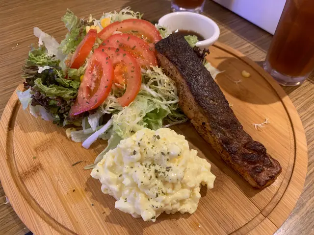 香煎紅𩶘魚柳拼豬扒配薯菜,白菌卡邦尼意粉