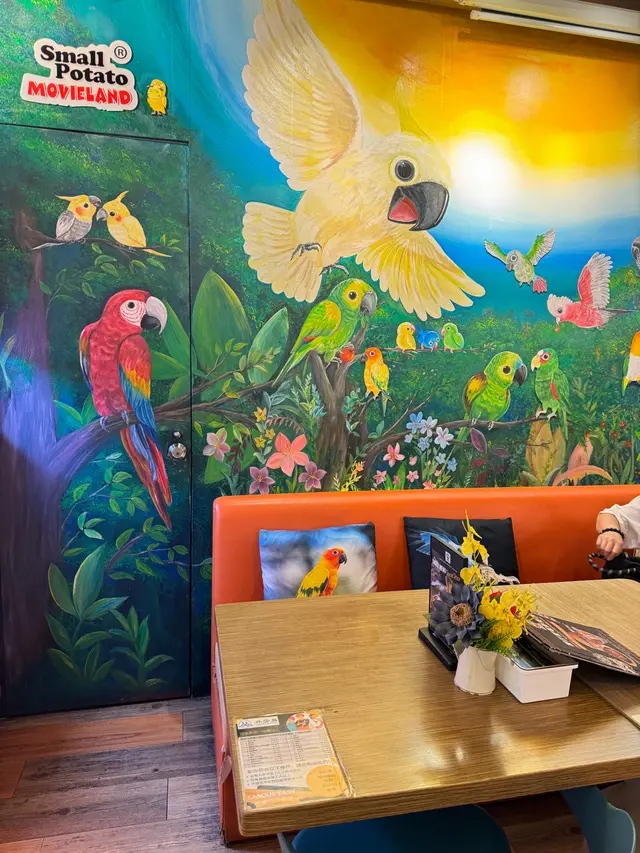 位於柴灣戲院旁邊的薯仔屋,是一間充滿特色的小餐廳。外觀低調卻帶點趣味,門口掛着幾個鳥籠,裡面真的住着幾隻色彩斑斕的鸚鵡,偶爾還會發出幾聲「你好」,替街角增添了一點生氣。走進店內,更會被眼前一片「鸚鵡世界」所吸引——牆上、架上、櫃枱旁,全都是各式各樣的鸚鵡飾品,從公仔到掛畫,細節滿滿,讓整間店都洋溢着一種異國風情與童趣感。餐廳佈置舒適整潔,除了普通座位之外,還特別設有一個兒童角——放有一些積木和圖畫書,讓小朋友在家長用餐時也能開心玩樂,氛圍更添親子友善。這設計相當貼心,尤其適合帶孩子的家庭來輕鬆享受午後時光。這次我點了下午茶餐:雪糕窩夫配青檬梳打。窩夫外層香脆、內裡鬆軟,剛出爐的香氣撲鼻,配上香草雪糕入口冰涼香甜,令人心情愉快。青檬梳打酸甜平衡,氣泡細緻清爽,喝一口就有消暑之感,是炎炎夏日的完美搭配。總的來說,薯仔屋無論在主題佈置還是餐點口味上,都令人印象深刻。那對在門外悠然鳴叫的鸚鵡,加上店內親子友善的設計,讓整個用餐體驗既輕鬆又溫馨。若你在柴灣看完戲,想找個地方與家人或朋友歇一歇,不妨來這裡享受一下窩夫的甜香與鸚鵡的陪伴。…查看更多