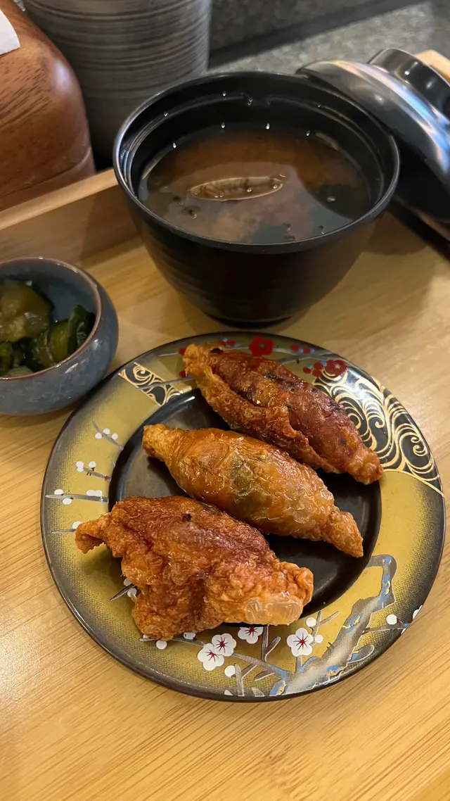 KAORU 薰居酒屋「薰」居酒屋🏮環境超美,圍著bar枱而坐,廚師直接放食物於你面前。格調就像置身了日本一樣。日式定食$58起,超抵食!若經過尖東,強烈推薦你們一定要食依間![加配小食]雞皮餃子🥟唐揚魷魚🦑圈每款加配價$15,而且即叫即炸,抵食又好食🤤外皮咬落好清脆既聲;質感乾身唔會好油。[定食]蒲燒鰻魚飯三色魚生飯兩款皆配麵豉湯。麵豉湯味道👅調得剛好,唔會過鹹。前菜漬物酸酸地幾開胃🤤。主食份量大大份。鰻魚配上照燒汁味道甜甜及沒有暗骨;三色魚生色澤鮮色,食落新鮮而且嫩滑。查看更多