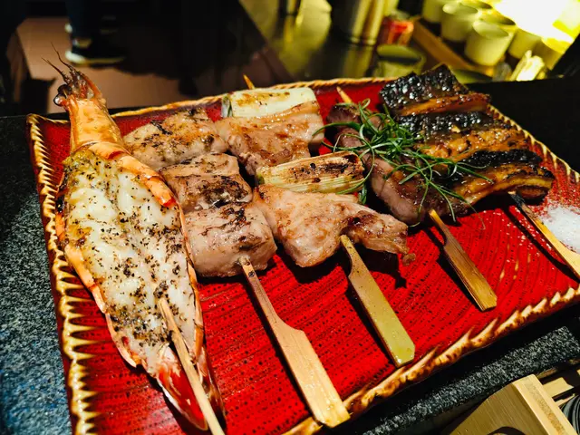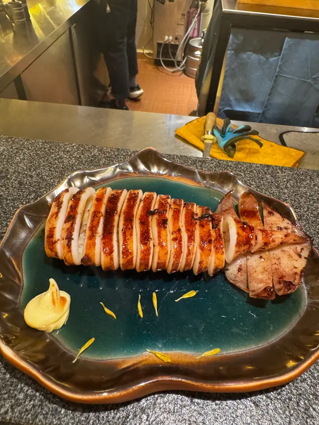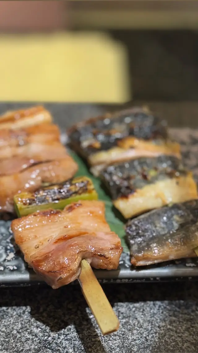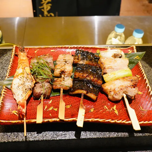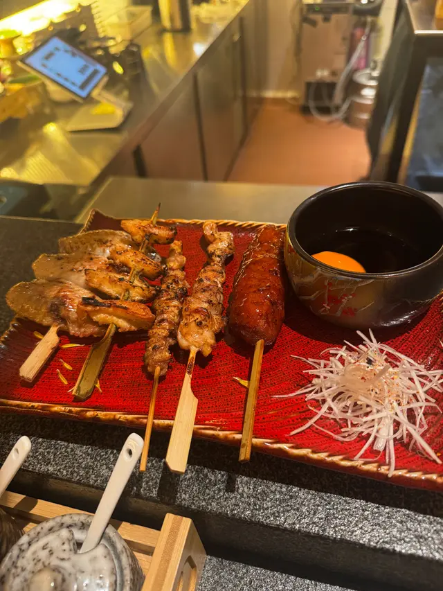 汁燒魷魚筒這道菜非常出色,醬汁香甜,令人想起爆谷的香氣,非常開胃。魷魚的口感也十分鮮嫩,值得一試。鮑魚海膽杯這款海鮮拼盤完全不會失望,鮮甜的鮑魚與海膽的搭配簡直完美,口感極佳,讓人一口接一口。飯糰這道飯糰還算可以,但相對其他菜來說,沒有什麼特別之處,稍顯平凡。精選串燒拼盤串燒拼盤的選擇相當豐富,包括:- 厚切牛舌芯串:肉質鮮嫩,口感絕佳。- 豬頸肉串:多汁美味,令人滿足。- 京蔥五花腩串:肥瘦相間,口感十分美妙。- 鹽燒虎蝦:新鮮的蝦肉,鹽燒得恰到好處。- 蒲燒鰻魚串:鰻魚味道濃郁,讓人驚喜。#雞肉串燒拼盤雞肉串燒拼盤同樣精彩,包含:- 自家免治雞肉串:鮮嫩多汁。- 照燒雞肉串:甜美的照燒醬讓雞肉更添風味。- 脆香雞皮串:雞皮酥脆,香氣四溢。- 德島阿波尾雞胸軟骨:軟骨的彈性讓這串別具風味。- 鹽燒雞翼串:鹽燒得恰到好處,雞翼肉質鮮嫩。特別要提的是,雞皮用雞軟骨的搭配,真的是很好味,口感獨特,讓人驚喜。總體來說,這間居酒屋的菜品質素相當高,值得推薦給愛好美食的朋友!查看更多