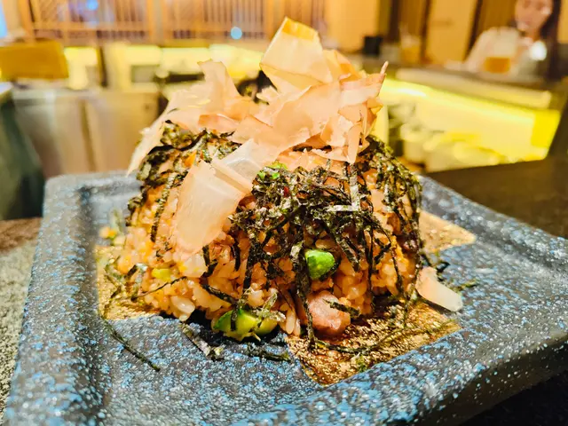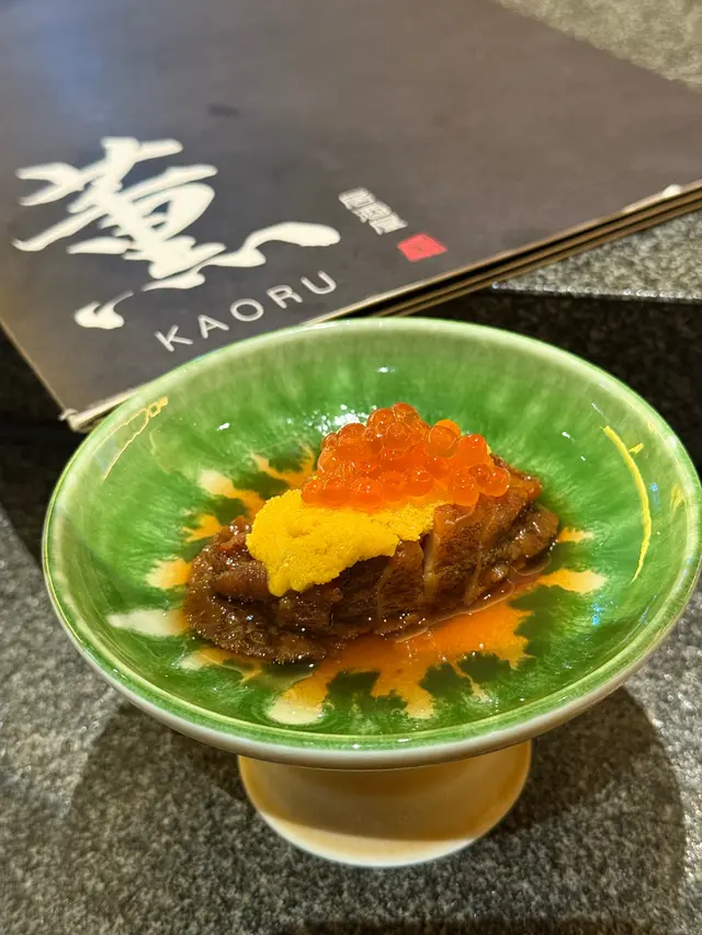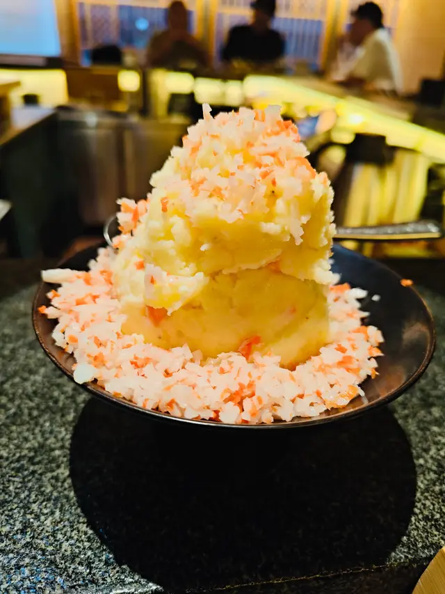 🍽薰居酒屋KAORU📍尖沙咀加連威老道96號希爾頓大廈1樓1A號舖冇諗到尖沙咀呢間隱世日式嘅居酒屋「薰」,裝修咁有日本feel,座位唔算多,但坐吧枱可以睇住師傅即場烹飪,大家都話要過520,咁就一於嚟呢度撐枱腳。 ~炸軟殼蟹&蟹肉薯仔沙律炸軟殼蟹炸到金黃色似朵花咁,脆到連殼都吞得,蟹肉仲juicy到滴汁。蟹肉薯仔沙律嘅雪糕球造型夠晒得意,薯蓉滑到似食緊cream,撈埋絲絲蟹肉同柚子醋,凍食超refreshing🥰~精選串燒拼盤串燒控必嗌。厚切牛舌芯切到成塊牛肉乾咁厚,咬落爆肉汁仲有炭燒焦香,正到拍枱。蒲燒鰻魚串:皮脆到「咔嚓」聲,啲肉肥嘟嘟又彈牙,甜甜哋嘅燒汁仲可以撈多碗飯。鹽燒虎蝦:大隻過我手掌。蝦肉爽到彈牙,蝦頭啲膏多到漏,食完要啜手指。京蔥五花腩肥瘦啱啱好,啲油香夾住燒到軟淋嘅京蔥,邪惡得嚟好滿足❤️~鮑魚海膽杯打卡呃like首選,隻鮑魚煮到淋得嚟仲keep到彈牙,上面堆滿鮮甜海膽同爆汁魚籽,一啖食落去,鮮味衝上腦門。個杯仲靚到唔捨得搞亂,忍唔住相機食先半個鐘🤣~汁燒魷魚筒成隻手臂咁長嘅魷魚。燒到外皮脆卜卜,切開啲肉仲識彈下彈下,甜甜哋嘅燒汁吊出鮮味,配杯冰凍梅酒真係冇得輸。 ~日式和牛炒飯鑊氣勁過大排檔。珍珠米粒粒分明,每啖都食到焦香和牛粒同爆香蒜片,仲有流心蛋黃撈勻,食完成個飯碗刮到乾淨😀~自家免治雞肉串居酒屋經典點可以冇?雞肉mix軟骨碎,咬落「索索」聲,仲有流心蛋黃撈埋甜醬油,食到lam lam脷🤗偷偷話你知,打卡仲送生蠔,海鮮迷一定要mark實~同班friend飲住sake吹水,人均$400左右。查看更多