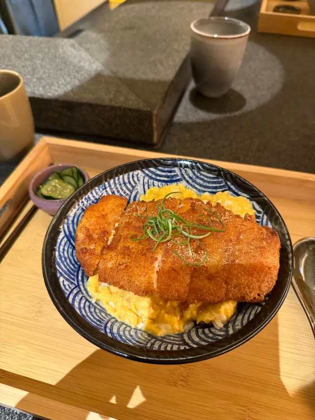 尖東午餐發現左間新開居酒屋!門口招牌好靚好有溫泉旅館feel🫢入到去鋪頭唔大,高櫈座位圍繞一個正方形,侍應就係中間備餐,好似我媽卡些咁。午市lunch set$58up,冇加一,我就叫咗豬扒滑蛋飯😗吉列豬扒係面,洋蔥滑蛋同白飯係底,用瓦鍋裝住,旁邊有醃青瓜配菜。上枱時,擺盤小巧精緻👍🏼 豬扒炸得脆,米亦都係用珍珠米,味道就規規矩矩。枱上提供左唔同味粉比客人調味,唔夠喉仲可以加錢叫小食同嘢飲~查看更多