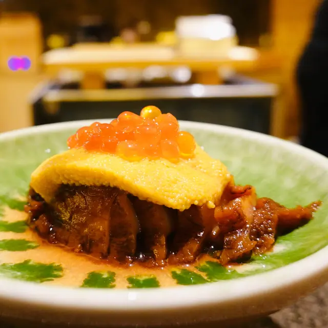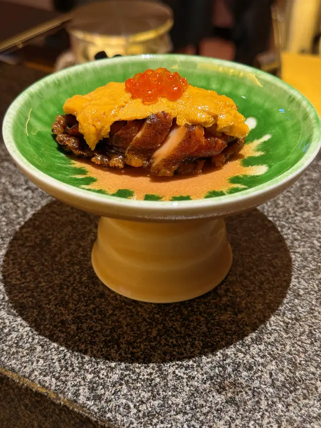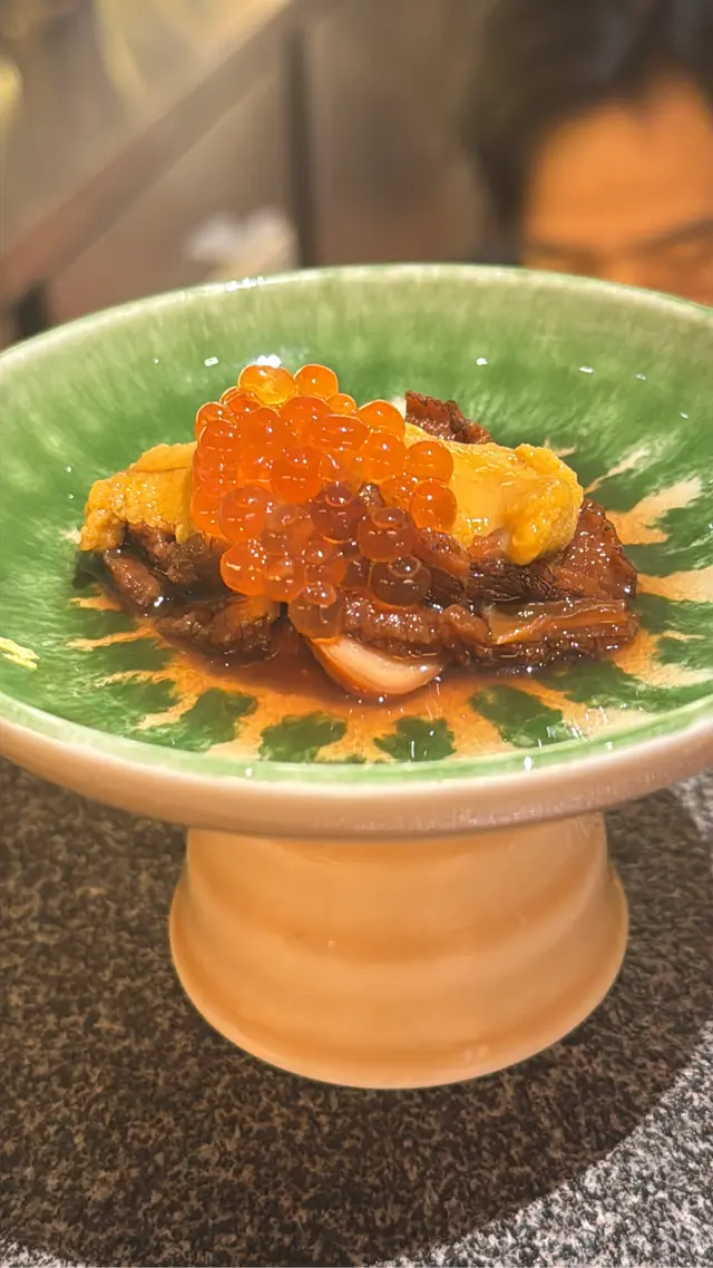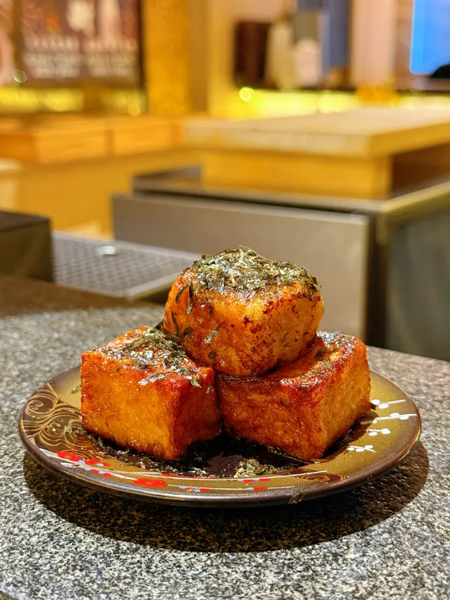 今次我地兩個都放假,老婆過左尖東呢頭做facial,做完一齊食飯,我就上網搵左呢間日式居酒屋,睇佢環境好鬼靚,個場好似食omakase咁,就揀左呢間食🏮餐廳環境就係一個正方形,好似omakase既坐位,每一道食物都整得好精緻咁上枱,儀式感十足,枱面有各種調味料比客人食串燒用☺️鮑魚海膽杯($88)呢個海膽杯餐牌上有個手指公,佢唔係平時有飯係底果種海膽杯,原隻鮑魚上面加上海膽同三文魚籽,賣相精緻,海膽一d腥味都冇,鮮味十足🍣醬汁煎豆腐($48)呢個豆腐表面煎得微微脆,個醬汁亦都一齊煎乾,令到口感又脆又滑☺️蟹肉薯仔沙律($46)呢個薯仔沙律佢鋪滿蟹柳粒,令到個薯蓉增加口感,幾特別🥔🦀雞肉串燒拼盤($226)佢地有兩款串燒拼盤,雞肉串燒拼盤有5種唔同既串燒,分別有:自家免治雞肉串照燒雞肉串免治雞肉串表面有層簿簿既醬汁,再加埋個月見汁食,滑滑既蛋漿包住啖啖肉🐥脆香雞皮串鹽燒雞皮串,燒得好香,口感彈牙得黎又帶點脆口🐤照燒雞肉串燒雞肉串肉質嫩口,呢個我覺得要加枱面既調味料食更好,本身味道唔算突出🐔德島阿波尾雞胸軟骨串呢個雞胸軟骨同平時一粒粒既雞軟骨唔同,佢係比較大條三角形既軟骨,佢好脆口,我自己好鐘意食呢款🍡鹽燒雞翼串鹽燒雞翼火候做得好,塊皮少少濃邊,同時保持到裡面肉汁🐣呢個拼盤可以食齊唔同款式個雞係幾特別,味道同特色都有,係價錢方面貴左少少🤏炸軟殼蟹($68)原隻軟殼蟹先$68,我覺得係抵食,size都唔細,炸得香脆🦀燒A5和牛扒(優惠價$168)係度食夠$350就可以用優惠價叫一份和牛或者一打生蠔,我地就揀左和牛,師傅係廚房預備好再攞出黎係客面前用火槍燒,個油脂燒到出曬黎,好鬼香,仲要好大份,熟成度亦都做得好好,燒鬼岩岩熟,牛要帶點生先好食🥩山崎蒸餾所貯藏梅酒($75)佢地呢度酒既種類都好多款,可以選擇就咁加冰或者加梳打,而我飲呢杯味道香濃清爽🥃呢間居酒屋整體黎講覺得好好,環境舒服,食物擺盤又靚,而且好食,成個感覺都係享受咁,價錢方面我覺得非串燒類黎講係抵食,普通一間日式餐廳都係呢個價,但係個咁靚既場食到係正,串燒就真係偏貴,不過佢貴得黎都比到高質素既食物,所以我都滿意👏🏻查看更多