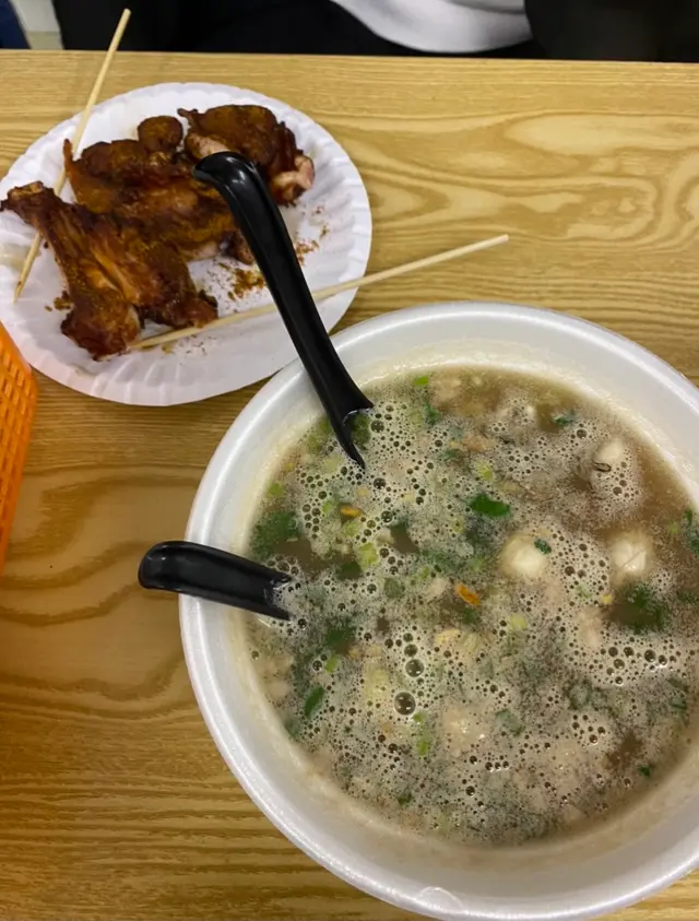 上網見到啲人話藍鳥係長洲街坊的宵夜之選,由街邊檔開到入鋪位。佢嘅招牌係炸雞髀,大大隻即叫即炸。表面再撒上孜然辣粉,香脆惹味不油,更可選擇由不辣至大辣的辣度。仲有就係蠔仔肉碎粥,仲話係食過最好食嘅蠔仔粥😮今日就嚟試下😝我今次去到當然叫咗佢呢兩嗰招牌菜😉 蠔仔肉碎粥($44),的確同上網嘅形容一樣,只係睇賣相真係一啲都唔吸引,但味道真係有啲喜出望外‼️ 加上佢啲蠔仔好肥美👍🏻 味道我就覺得真係好食嘅,但可能食落就會覺得有少少重胡椒粉,不過值得一試🫶🏻生炸雞髀🍗就真係有啲失望,明明上網見到好大隻,但嚟到係起咗骨嘅雞髀肉,亦炸得有啲老同份量較少,連$27我都覺得唔值🥹 不過隨咗食嘢之外,我諗都有好多神徒同爵屎嚟食,係等嘅期間參觀下都幾特別😂查看更多