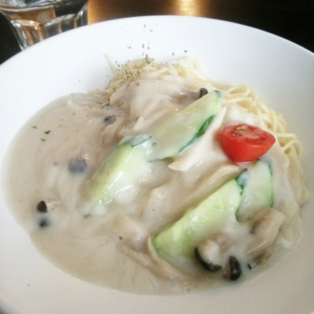 走进餐厅, 两旁放了很多寄卖品, 各花各样, 有食有摆置, 再进入就是餐厅部份, 选择了窗口位, 可望街景, 但由于玻璃窗实在太多尘在里在外, 感觉呕心, 失去胃口了. 但既然座下了便试下. 有数款午歺set, 我选了青苹果有机菜沙律, 汤是栗米汤, 好香滑, 还有粒粒小粟米, 有口感. 跟著是沙律, 青苹好鲜甜好爽, 蔬菜方面写明是有机, 都好鲜绿好清甜! 最后咖啡来了, 说不上是上品但越饮越有味道, 尚算不错.