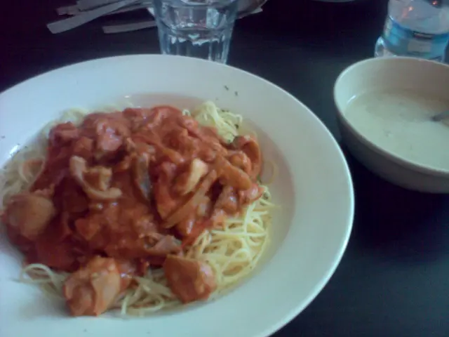 尾啖湯? WokWokCom等级42011-09-10138 浏览 关注 人們常說的頭啖湯是否特別吸引或者如何吸引,在下從未深究,尾啖湯這天卻總算是見識過了。抵達時已接近兩點,店內僅餘人客一、兩檯。之前嚐過白菌湯,味濃,多磨菇碎,當日甚驚喜,戲稱「國際白菌日」。俱往矣。這天的湯甚稀,味淡,幾不見蘑菇碎,回想,可能是因為已近午飯時段尾聲。尾啖湯,不可取。茄醬雞肉天使麵同樣失色,雞肉有點老,說不定也是因為時間不早,雞肉之前已待在鍋中一段時間。下次找個正常時段再來。不過,這次終有機會飯後在店內逛逛,看看書,甚悠閒,一樂也。 …查看更多以上食记乃用户个人意见 , 并不代表OpenRice之观点。赞好分享尾啖湯? 藝術.家 https://s.openrice.com/QrLT0l7mX00检举 张贴 评分3味道4环境4服务4卫生4抵食用餐日期2011-08-19用餐途径堂食人均消费$60 (午餐)
