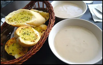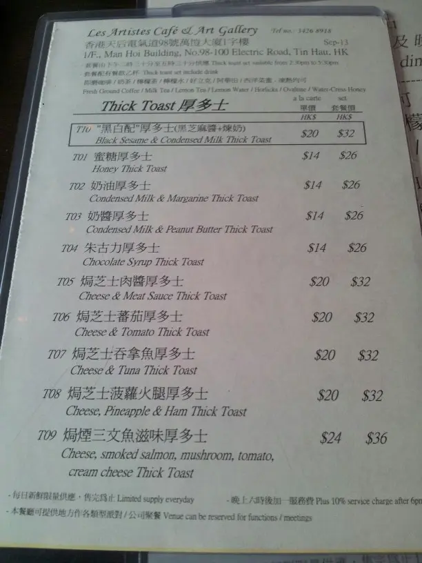 ::: 在家般悠悠閒的寫意下午 ::: 菲比熊等级42012-01-25298 浏览 关注 10月22日, 今日好想食西餐, 呀比就提議嚟呢度~ 行上一條唔太起眼嘅樓梯後, 一入門口先經過一個藝術展品區, 到達呢間感覺家庭式好cozy嘅用餐區, 書架上有書有雜誌睇, 又有音樂聽~ 然後我地就慢慢點餐喇.::: 白汁野菌雜錦腸意粉 + 凍咖啡 ::: $58隨餐附送是日餐湯, 今日係忌廉蘑菇湯~ 感覺上似係罐頭湯底, 再溝番d蘑菇茸入去咁. 忌廉味清淡, 滲出淡淡嘅蘑菇味. 整體味道偏淡, 不過勝在質地夠杰.雜錦腸有司華力腸、芝士腸、白豬肉腸幾種腸仔切片, 菇嘅份量唔算多. 意粉個白汁味道同是日餐湯十分相似, 不過味道都係偏淡, 好在d腸仔夠鹹先突出番個味~ 面頭有半片車厘茄同一片烤得頗乾嘅翠玉瓜, 但都係無乜味嘅… 意粉煮得較淋, 不過撈埋d汁食都ok~ 整體係好屋企風味嘅意粉~凍咖啡唔錯! 夠香夠濃帶少少澀味, 好好嗒~ 係可以用嚟嘆嘅咖啡!::: 白菌忌廉汁龍俐柳天使麵 + 凍檸茶 ::: $68其實個白菌忌廉汁又係美其名, 到頭來咪同個白汁一模一樣… 又有件車厘茄同翠玉瓜, 即係除咗塊龍俐之外就同個雜錦腸意粉冇分別…龍俐柳有2件, 份量都幾多, 味道夠鹹, 可以帶出番意粉同個汁嘅味道~凍檸茶夠晒港式茶餐廳feel, 檸檬都夠鮮, 又夠凍, 正!::: 蒜茸包 ::: $12跟餐加$12先有~ 不過一客有5件, 每件平均過半吋厚, 蒜茸牛油搽得均勻, 焗完又香又鬆化! 抵呀~::: 紐約芝士餅 ::: $22食飽飽後再散叫咗件cake~ 雖然呢個new york cheesecake唔算好正宗, 但佢個質地夠晒濕潤細密, 口感軟綿綿~ 芝士味清香不膩, 最重要面頭層cream夠薄, 唔會太heavy, 如果餅得做得實d更佳!呢度不論環境、食物、服務都好有住家feel! 雖然唔算得上好高質素, 但坐得好舒服, 食得夠寫意~ 一邊食野一邊睇書睇雜誌, 悠悠閒咁又過咗一個下午~ 好嘆呀!…查看更多+ 2以上食记乃用户个人意见 , 并不代表OpenRice之观点。赞好分享::: 在家般悠悠閒的寫意下午 ::: 藝術.家 https://s.openrice.com/QrLT0UD4X00检举 张贴 评分3味道4环境4服务3卫生3抵食推介美食臨近萬聖節, 台上亦有應節擺設紐約芝士餅凍檸茶 + 凍咖啡白菌忌廉汁龍俐柳天使麵蒜茸包 + 忌廉蘑菇湯用餐日期2011-10-22用餐途径堂食人均消费$69 (午餐)