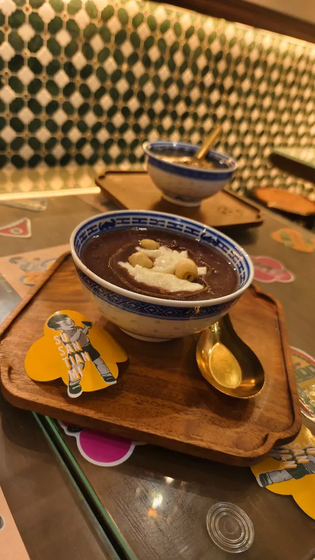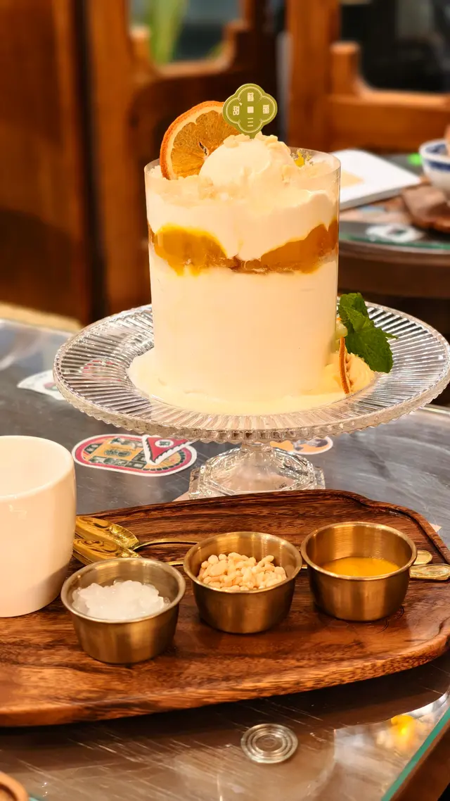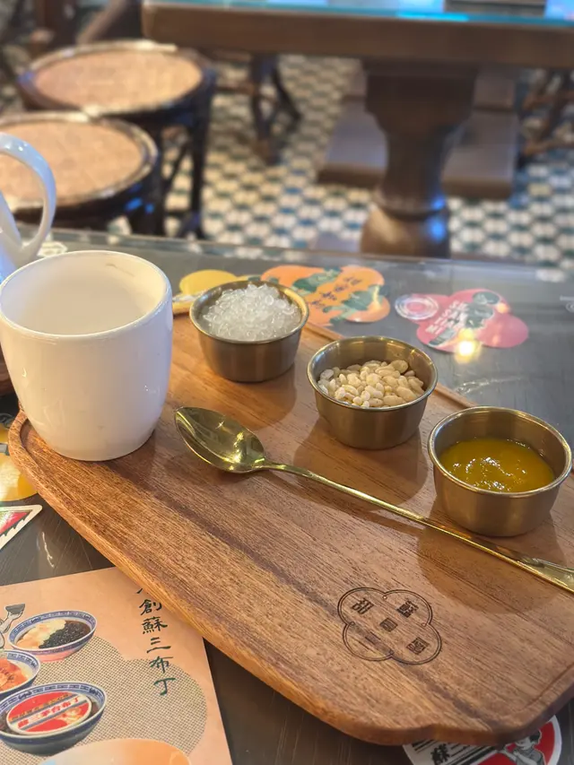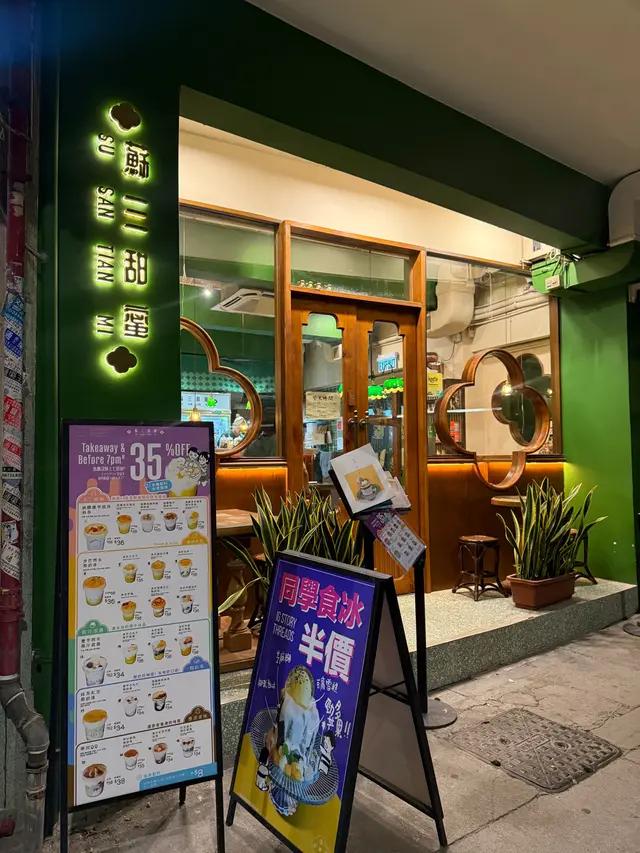 記憶中的糖水鋪大多都沒有什麼精緻裝潢因為大家快快吃完就閃人銅鑼灣的蘇三甜蜜應該是我看過最美的糖水店了蘇三甜蜜以懷舊香港為題深木色的桌椅 海棠花形的窗框 格子地磚每個角落都用心營造年代感跟懷舊風格餐點則主打傳統及中式融合的甜品 有多款招牌甜品 是其他糖水鋪都找不到的𓋪 蜜柑桂花酒釀雪燕冰蘇𓋪 蘇三茅台朱古力布丁𓋪 華田火山布丁𓋪 小四喜𓎾 芒果仙草沙冰來這裡一定要嚐冰蘇跟茅台布丁雪燕冰蘇如瀑布般瀉下 蜜柑果香和桂花清香在中間緩緩散開配上雪燕跟牛奶冰底 口感清新又不太甜膩 隔壁桌把冰蘇直接變成生日蛋糕 好有創意另一個招牌茅台布丁 推薦朱古力口味朱古力味道濃厚香甜 跟茅台滲出的酒香很搭不喝酒的人兒也能體驗看看哦濃郁的華田布丁 香甜口味跟茅台布丁各有千秋想要清新口感的 可點小四喜仙草拼盤有煙軔芋圓 酸甜芒果粒配清涼仙草 口感豐富多少消除前面的重口味哈哈最後點了爽口解膩的芒果仙草沙冰超大杯 絕對可以跟友人分享…查看更多