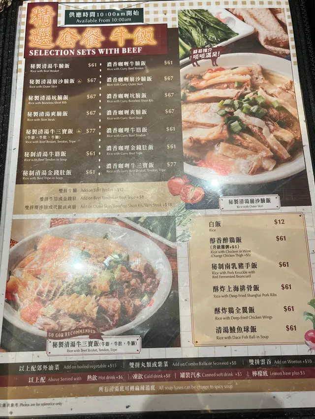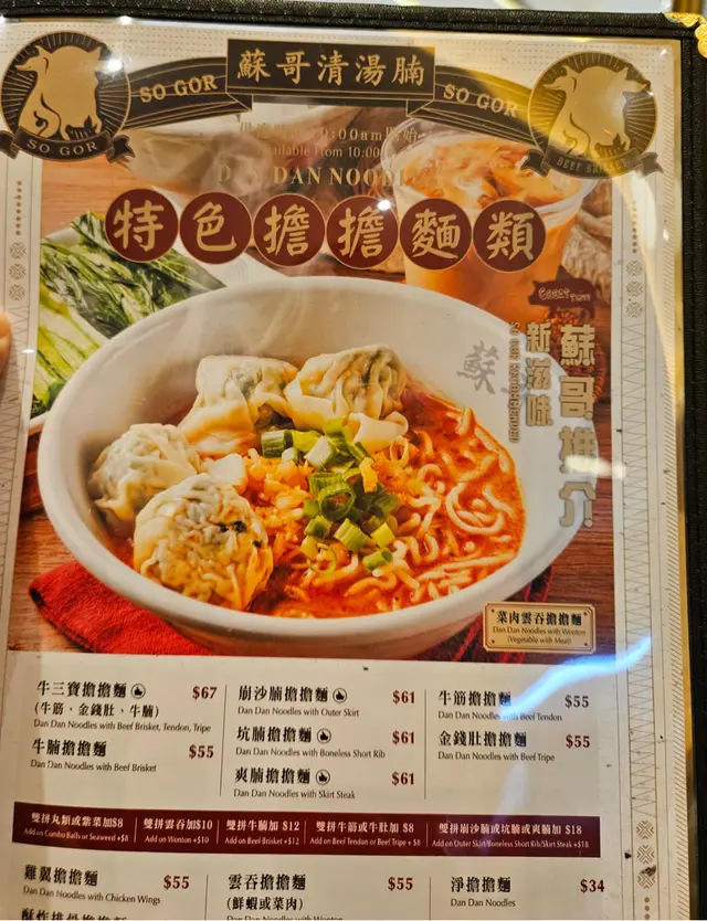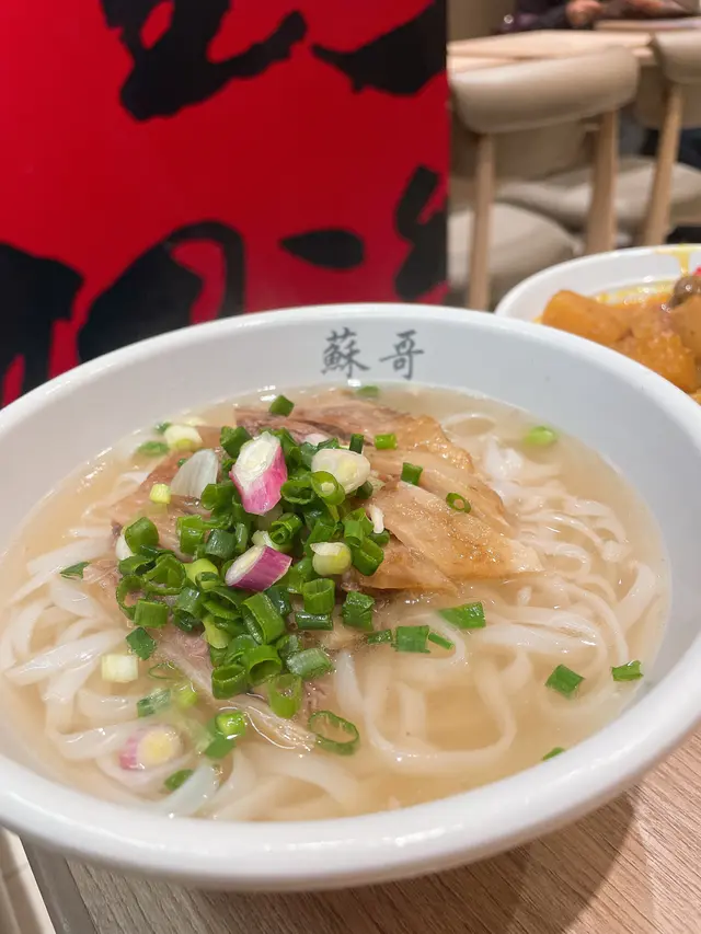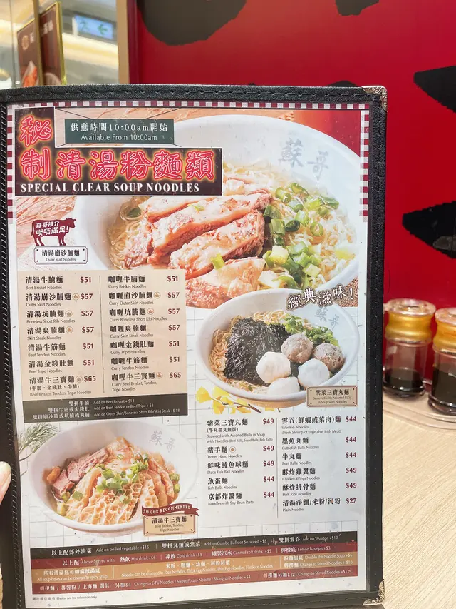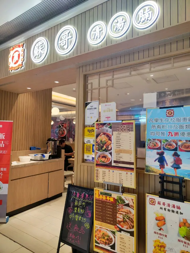 我最近去了一間位於將軍澳新都城中心的餐廳,叫做「蘇哥清湯腩」。這間餐廳主打港式粉麵與廣東風味小食,無論是牛腩、鯪魚球還是牛肚,都展現出地道手工與細膩味道。我點了清湯崩沙腩幼麵,入口即化,肉質腍嫩滑溜,炆得岩岩好,牛味濃郁而不膩。另外,我也點了清湯金錢肚幼麵,入味腍滑,口感一流,牛肚炆得非常入味,吸收晒滷水精華。我還點了酥炸鯪魚球,外皮酥脆,內裡彈牙,魚香濃郁,咬開仲有微微果香,夠晒傳統又有驚喜。最後,我要評價這間餐廳的味道、抵食、環境、服務和衛生。總的來說,我對這間餐廳的體驗非常滿意,味道、服務和衛生都非常好。唯一需要改進的是環境,希望可以提供更舒適的用餐環境。…查看更多