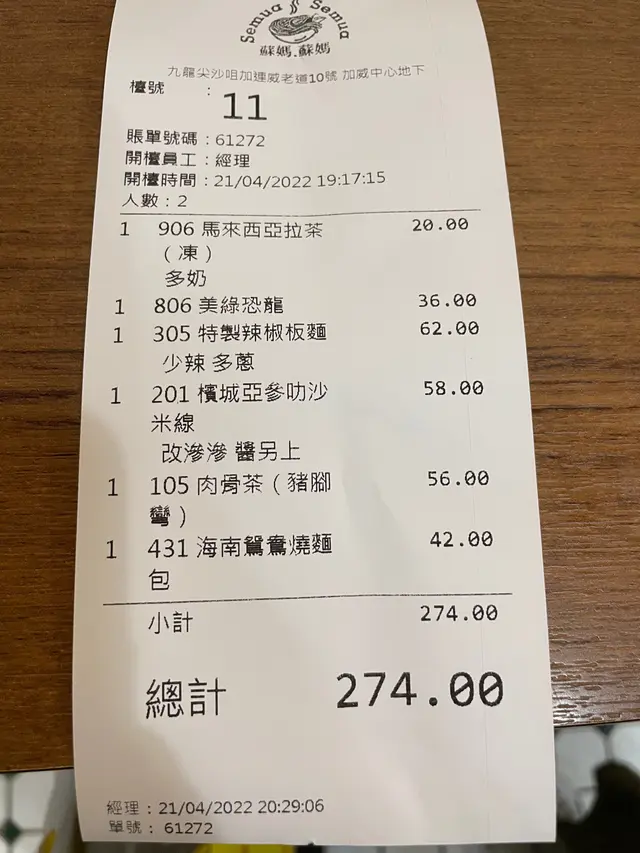 蘇媽.蘇媽馬來西亞茶餐室 (尖沙咀) 网址: https://s.openrice.com/QrLS0nHy5W0 地址: 香港尖沙咀加連威老道10號加威中心地舖 电话: +852 23628020