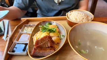 二访位于太子嘅苏山鸡饭今次特登下午茶时间嚟encore海南鸡饭🐓天气太热放弃咗椰子鸡煲 冬天一定要再凯旋归来先得😎🔸 招牌海南鸡饭 上枱嘅时候已经觉得海南鸡卖相出色鸡肉无骨嫩滑 皮肉之间夹咗层啫喱配埋油饭 及 三款酱汁:辣汁、姜蓉同甜豉油令鸡肉味道层次更高冬瓜汤加入鸡杂更加鲜味 冇半点腥味入口充满鸡同冬瓜嘅自然鲜味🔸 扎肉手撕鸡汤粿条 粿条偏粗身 质地软滑 夹嘅时候好易滑走!一丝丝嘅手撕鸡同扎肉 口感层次丰富汤底清甜有鸡香 满足! 🔹 麻辣玻璃鱿鱼通菜 通菜面头铺上爽脆玻璃鱿鱼再拌上浓郁嘅麻辣汁 辣度适中 反而香气突出🔸 夜市沙嗲(牛肉/鸡肉)分别有2枝牛肉/鸡肉串 两款肉经腌制后烧至外层微微焦香沙嗲酱香浓惹味 有粒粒嘅花生 甜甜辣辣🔹 雪糕薄荷朱古力咖啡用一球薄荷雪糕作点缀浓郁嘅咖啡雪糕半溶落咖啡令咖啡苦中带点甜 几特别🔸 冻金装柑桔蜜用上新鲜青柑桔 味道天然 清新解腻!🚩苏山鸡饭 太子弥敦道759-761号蓝马之城地下2-3号舖…查看更多