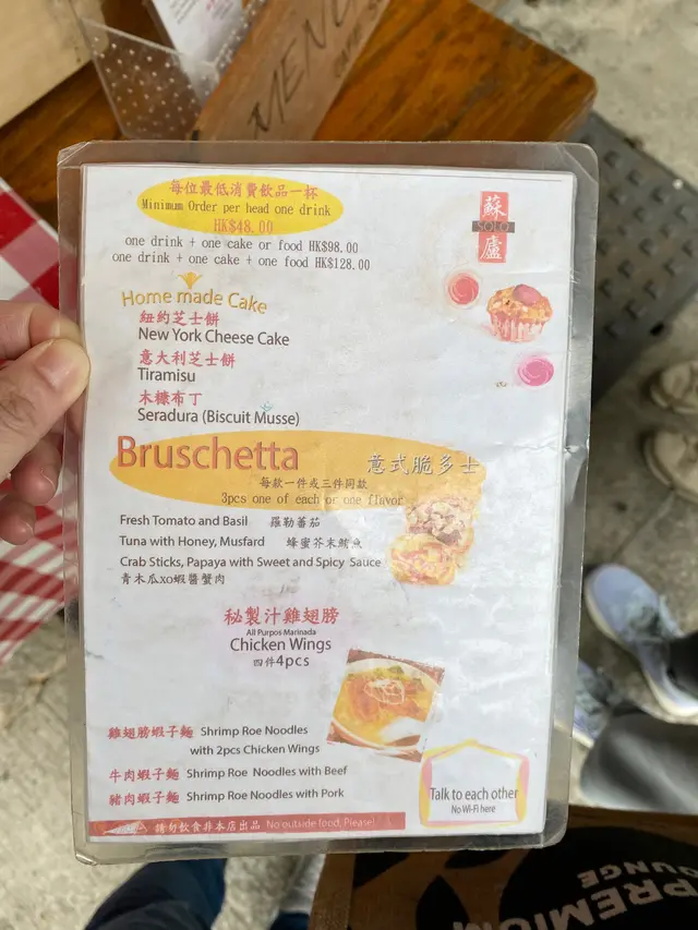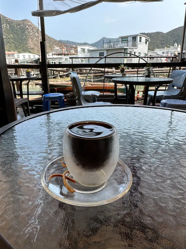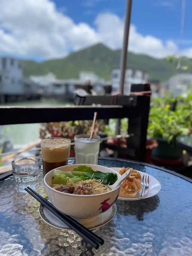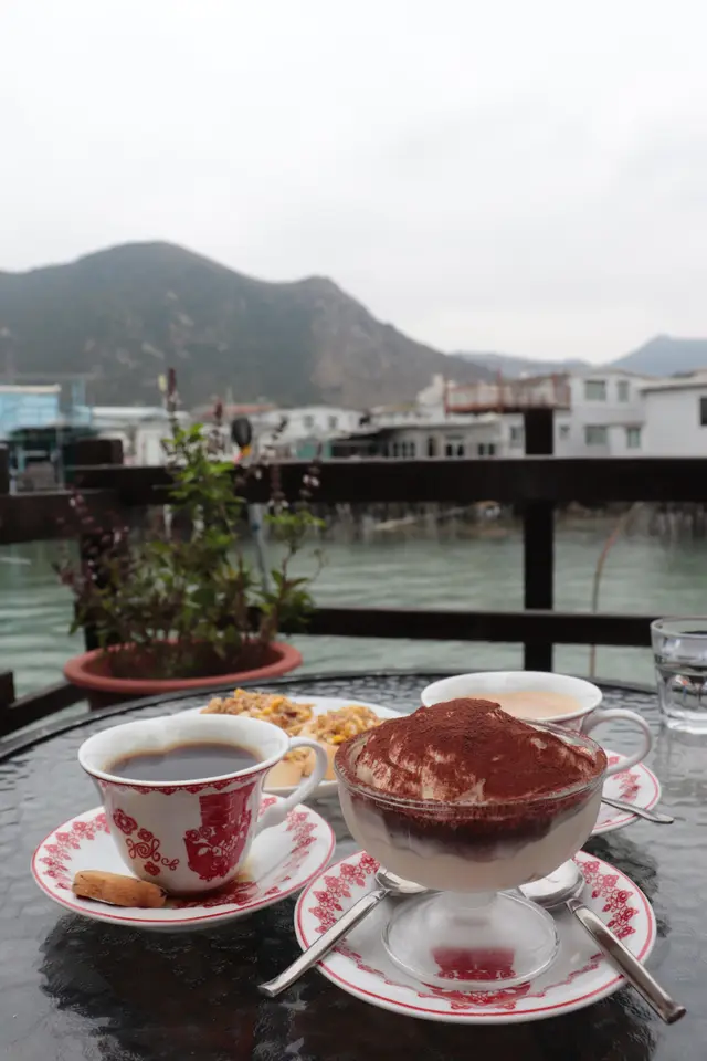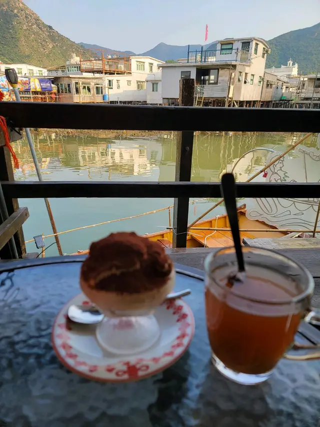行完山終點站在大澳,正好在大澳食個下午茶.小小的大澳漁村除了小食店外, 茶室,海鮮小菜飯館,也有特式小cafe. 在網上看到這間cafe原來都開業已經有13年,於是入去試試. 另一個選擇此店是因為餐廳户外部份是由高腳棚架搭成, 而且旁邊是河道. 完完全全可以感受及體驗住在大澳棚屋的特別.餐廳應該屬於家庭形式,所以食物及飲品選擇不多. 簡簡單單. 朋友選擇雞翼蝦子湯麵(朋友感受:蝦子麵少許蝦子味,不過雞翼肉質麻麻唔夠嫩滑)& 冰釀精品咖啡(不多冰凍有咖啡香)我自己選擇紐約芝士蛋糕&熱紅吸咖啡加奶(可以選擇不加奶) ~ 2樣都算正常, 沒有什麼特別.總結, 感受大澳的寧靜及慢活.飲杯咖啡欣賞下旁邊風景. 不過,星期六,日及公眾假期人流太多,座位有限,也不可以坐太耐😅…查看更多