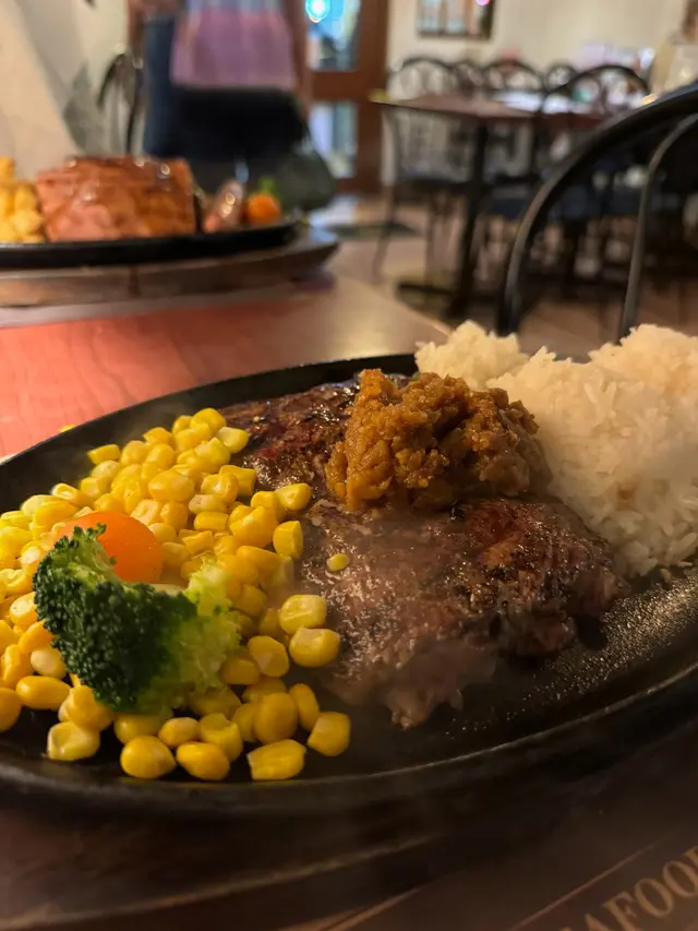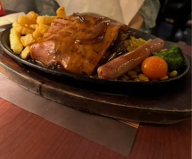 對上一次嚟食已經係幾年前,果陣係移咗民嘅朋友帶我食,今次再嚟食同記憶中一樣咁好食環境裝修都好有情調,好似食燭光晚餐咁! 今次嗌咗鐵板扒餐嘅西冷扒餐同埋什扒餐,其實之前都係食開牛扒,但唔知點解突然又心思思好想食什扒(雖然之後好後悔依個決定)兩個都係叫咗洋蔥汁,一個跟薯菜一個跟白飯 每個餐都會有一份牛油多士,烘到好香好脆,仲落咗勁多牛油,超正!栗米忌廉蘑菇雞湯就普普通通咁上枱棟陣個鐵板仲係勁熱,聽住啲「炸炸聲」就係食鐵板嘅最大樂趣牛扒一定要加蒜蓉!!!連平時唔太好蒜蓉嘅我都忍唔住加咗好多,唯一嘅缺點係個口勁大陣味XD每一啖都好香好嫩,好快就比我哋清晒什扒有好多款,火腿、腸仔、雞扒、豬扒、普通牛扒都齊晒份量上大滿足,但以依個價錢嚟講就好唔值都係食返牛扒好啲 餐仲有球雪糕,都幾開心查看更多