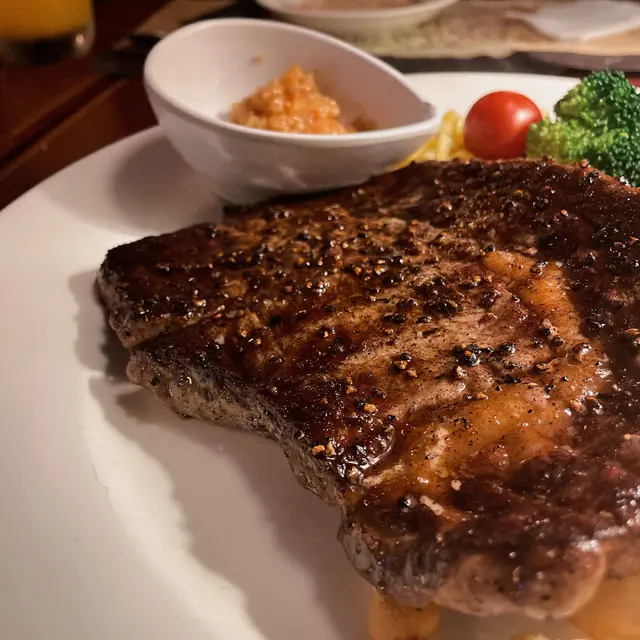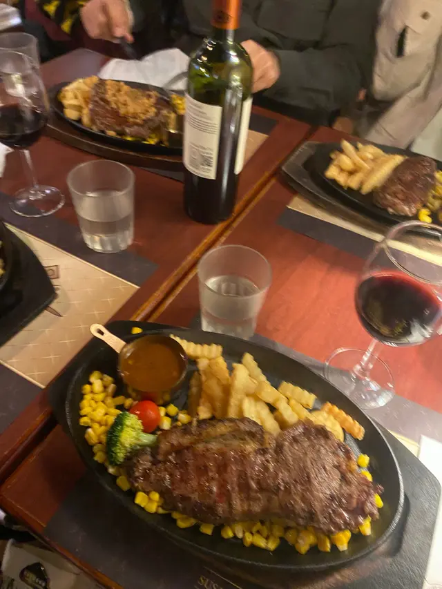 這裡應該是本地老牌的扒房,感覺是像花園餐廳那一種類,所以都會向這個級別的水準來評價。第一次來這裡點了兩份牛扒鐵板餐,一份是西冷扒另一份是牛柳,一樣都是跟薯菜和磨菇汁。先來餐湯羅宋湯,湯味相當濃厚,蔬菜和肉還有一些沒有完全煲爛,沒有辣味這個我比較喜歡,比較大部份的餐廳好。再來牛油多士,但我已經把湯渴完了,如果跟餐湯一起來就好了,我就可以沾一些湯來食,不過沒有都沒問題,這多士空口食都好可以,多士是熱上的牛油已經溶入當中…讚!主角牛柳餐來了,感覺沒有大堆頭的,但我喜歡這樣,因為有些餐廳是很大堆頭的令人無從下手,結果薯條都被浸到軟了,但這裡沒有這個問題,我喜愛食的薯條慢慢食還是脆的…再讚!牛柳是叫5 成熟的,切開是看見是剛好的,食下去有牛味也嫩口的,又要讚一個。總括這餐廳是值得一試,有機會還會再來。查看更多
