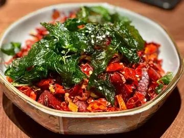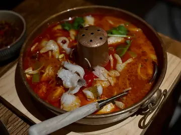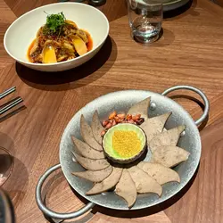 呢间餐厅以云南滇菜为主打,融入来自佤族、傣族等少数民族嘅传统风味,更有一系列珍稀菇菌菜式🥢大厨团队嚟自云南,厨艺总监由曾获黑珍珠一钻嘅大厨担任🏵️💗百香果油醋汁凤梨凤尾虾($108)大只爽口嘅凤尾虾配上酸酸甜甜嘅新鲜凤梨🦐以清爽嘅百香果油醋汁同大量芫荽调味,非常开胃🍍💗三年诺邓火腿配手撕乳扇($328)云南诺邓火腿有「中国三大名腿」之称🍖大理白族独创嘅手撕乳扇系以鲜牛奶混合酸浆拉制后晾干成薄片🧀火腿嘅咸香醇厚,奶香浓郁嘅乳扇,再加上香甜多汁嘅哈密瓜,味道好有层次🍈💗螺丝椒炒白葱($328)严选时令云南野生白牛肝菌,菌肉紧实爽脆🍄🟫加入螺丝椒猛火快炒,浓厚嘅菌香碰撞微辛嘅青椒香味🫑💗油淋云南黄牛干巴($268)黄牛干巴将黄牛肉以盐、花椒、辣椒等香料腌制,再晾晒风干而成🥓并加入大量文山丘北县特级干椒同花生爆炒,味道麻辣咸香,越食越上瘾🌶️💗大理野果酸汤鱼($268)贵州酸汤鱼汤头酸辣醒胃,柠檬香茅味突出,味道有d冬荫功🍲鲜鱼片嫩滑无骨,仲有豆腐、芽菜同莴笋等配料吸收汤汁精华🐟💗诺邓火腿焖小麦瓜($88)选用云南特有姜柄瓜,瓜肉入口软烂🥒加上清嘅嘅红萝卜,加入炸蒜头同咸香诺邓火腿炒香🥕💗古法铜锅油焖鸡($198)油焖鸡将鸡肉、薯仔、番茄等配料放入铜锅炖煮🥘鸡肉保持油润嫩滑,薯仔炆到软烂入味,味道浓稠且带微辣,送饭一流🥔💗炭烤牛肉小串($138)炭烤牛肉串肥瘦均匀,充满孜然粉香味,麻辣风味非常惹味🍢💗老昆明韭菜花肉末小锅米线($78)小锅米线汤头酸辣鲜爽,配上滑捊捊嘅米线,有少量猪肉碎同韭菜作配料🍜💗黑松露菌子焖饭($98)选用野生黑松露、牛肝菌、黑皮鸡枞菌等时令菌菇,将浓郁菌香焖入米饭中🍄🟫再配搭煎荷包蛋同酸腌萝卜🍳将所有材料捞饭一齐食,味道好丰富🍚💗鲜花饼($12/个)以松化嘅油酥饼皮包裹住玫瑰花馅,食起嚟花香浓郁且甜而不腻🌹💗荔枝冰茉莉($38)茉莉花茶加入新鲜荔枝调制,充满清新嘅果香同幽雅嘅花香🌸💗柠檬油柑茶($38)柠檬油柑茶酸甜解渴,可以有效促进消化🍋…查看更多
