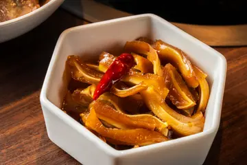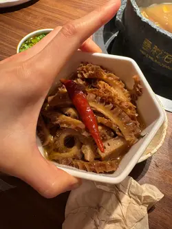 都系由西瓜同桔,好甜不过今次冇食佢啲凉菜,因为好辣又咸 肚饿嗌咗个现成嘅卤水金钱肚,冇得走辣一定要食辣的 质素麻麻地,因为偏硬 同埋想枱好细份之前好似大份少少同埋底下垫咗三件好大嘅莲藕