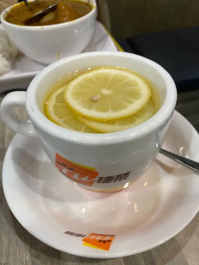 跟餐配左杯熱檸水 不過不失同事叫嘅 咖哩牛肉飯用料充足 咖哩味十足有些少辣度 大概譚仔三小辣度入口惹味