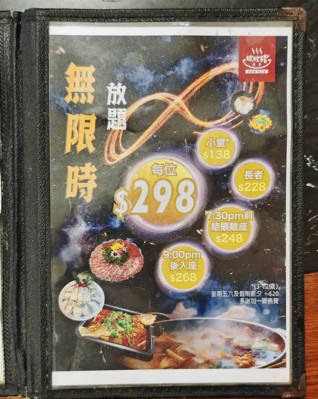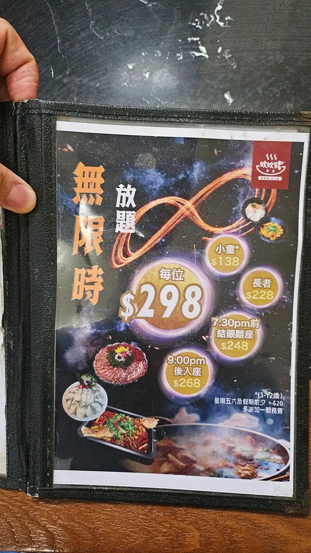 位於太子❣︎蚊蚊豬老火鍋❣︎而家做梗無限時任飲任食火鍋放題,價錢只需$298咋😱性價比超高👍🏻👍🏻頭盤每枱都會贈送時令蒸海鮮🦞之後就可以自己任揀食物,四川烤魚🐟四川雞煲🐔唔同款式牛肉➕日式刺身➕多款火鍋配料➕小食➕雪糕🍧等等⋯⋯全部都係無限時任飲任食架😍5:30入座食到凌晨12:30都得,連啤酒🍻都係任飲🤤仲要有支裝青島添,好岩同朋友吹水傾偈講是非👍🏻宵夜必到之處。☆彡推薦以下必點系列😋ミ★❣︎頭盤時令海鮮🦞🦐🦀❣︎內有膏蟹🦀鮑魚,生蠔🦪鮮蝦同花甲,所有海鮮都係店主每日新鮮攞貨😋👍🏻仲會揀時令海鮮🤤保證新鮮,樣樣都好鮮甜,仲洗得好乾淨無沙添。❣︎三文魚刺身❣︎三文魚鮮甜豐腴,非常肥美😋👍🏻好有質素。❣︎泡椒魚皮❣︎魚皮爽滑Q彈,醃得酸辣麻香😋👍🏻攞來送啤酒一流。❣︎封門柳❣︎封門柳肉質柔軟,肉味濃郁😋👍🏻❣︎自家制炸響鈴❣︎呢到嘅響鈴即叫即炸架🤤👍🏻攞來打邊爐索晒啲湯汁,酥香味鮮,口感超好。❣︎雞子❣︎雞子唔係度度有架,呢到都包埋,仲要大大粒,漲卜卜😋👍🏻❣︎陳皮魚蛋❣︎呢個都係任食火鍋少見,魚香鮮甜,陳皮味回甘😋❣︎香脆炸饅頭❣︎饅頭都係即叫即炸🤤👍🏻炸到金黃酥脆,內裡軟綿,沾埋煉奶一齊食,當做甜品一流。…查看更多
