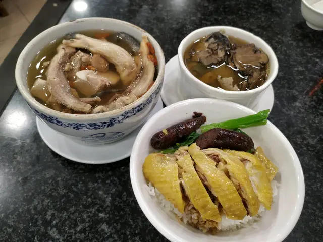 燉梧州蛤蚧蛇湯,天麻燉魚頭,蛇汁浸雞配膶腸飯