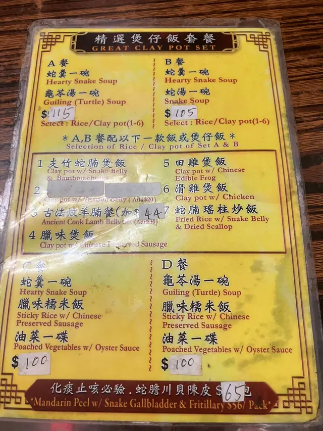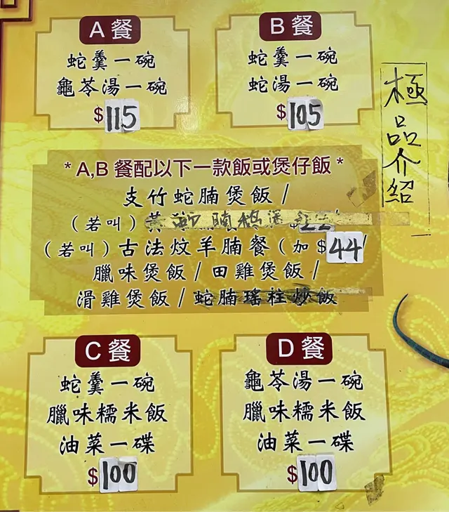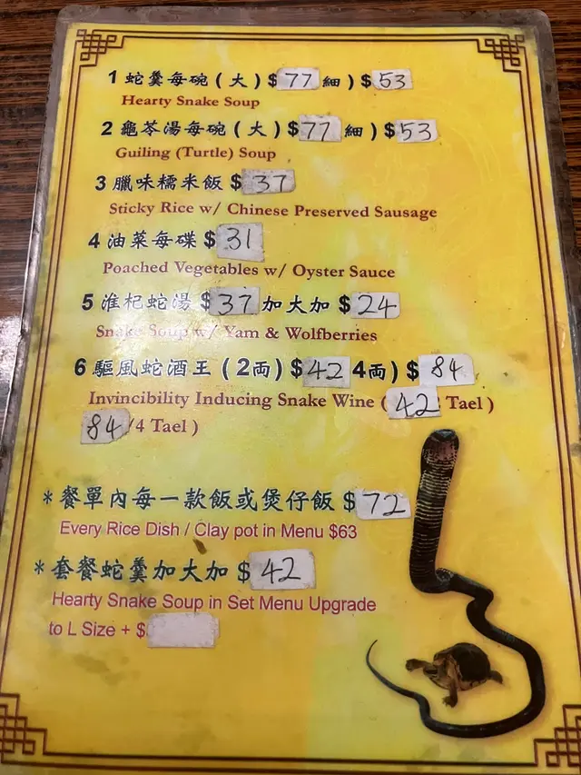 蛇王燊 (湾仔) 网址: https://s.openrice.com/QrLS0O1y000 地址: 香港灣仔交加街10-12號富榮閣地舖 电话: +852 28916639