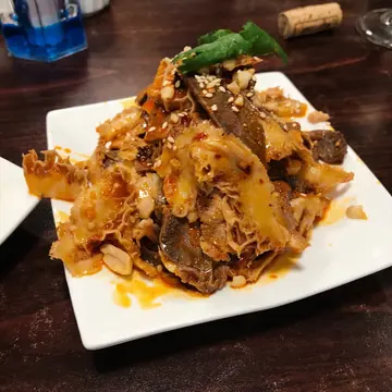 蒜泥白肉五花腩切得薄片 脂肪跟肉的比例刚好 蒜蓉磨得蓉入口幼滑 点上辣油 实属佳品酸辣黑木耳醋酸味与辣味调配得刚好 黑木耳爽口 作为凉菜很好招牌口水鸡鸡肉嫩滑有鲜味 配上麻辣油也不会盖过原本鲜味 如果能吃辣的朋友可以挑战超辣野山椒泡凤瓜没想到这道凤瓜会呛口 辣度十足 挺滋味夫妻肺片比较普通 没有很重辣味 较为失色瓦罐胡椒虾胡椒味重但不会盖过虾的鲜味 很惹味很好吃干锅猪大肠大肠不会弄得太干或太油 干爽又带点油香 好吃水煮桂花鱼鱼肉嫩滑 鲜甜 花椒辣味不会太呛 底下的冬粉吸了辣汁也很好吃霸王辣子鸡辣子鸡炸得不会很干 连同辣椒炒得干脆 送酒一流青椒青香鱼汤底清而带酸 不会觉得辣 底下的乌冬连同汤一起进食 不错酸辣土豆丝炒得清爽 不会太油 酸中带辣又够镬气炸馒头最后出场的炸馒头 外脆内软 点著炼奶吃是最好配搭特别感谢朋友带领前来品尝正宗川菜 实在令人惊喜满足…查看更多