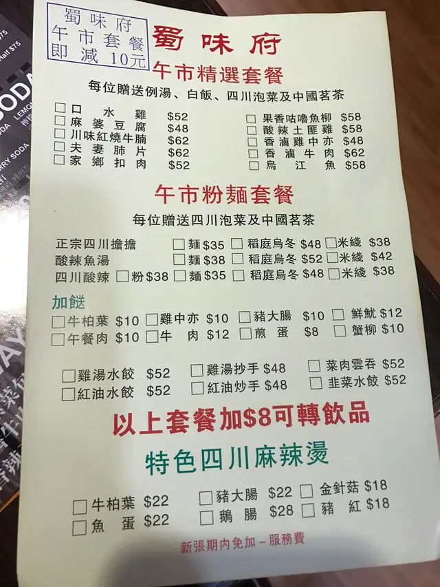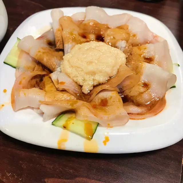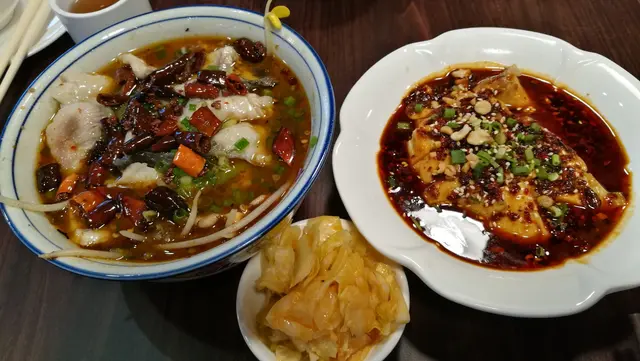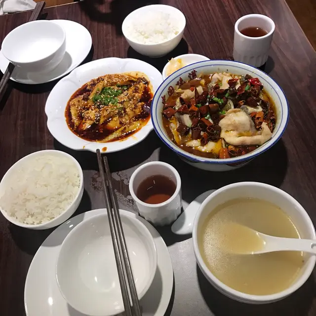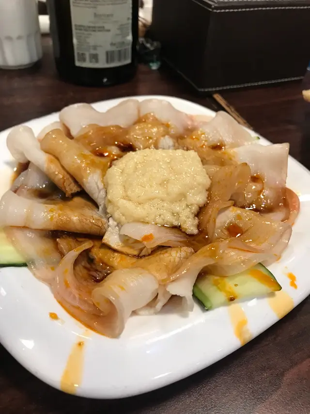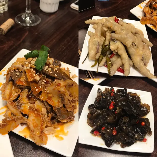蒜泥白肉五花腩切得薄片 脂肪跟肉的比例剛好 蒜蓉磨得蓉入口幼滑 點上辣油 實屬佳品酸辣黑木耳醋酸味與辣味調配得剛好 黑木耳爽口 作為涼菜很好招牌口水雞雞肉嫩滑有鮮味 配上麻辣油也不會蓋過原本鮮味 如果能吃辣的朋友可以挑戰超辣野山椒泡鳳瓜沒想到這道鳳瓜會嗆口 辣度十足 挺滋味夫妻肺片比較普通 沒有很重辣味 較為失色瓦罐胡椒蝦胡椒味重但不會蓋過蝦的鮮味 很惹味很好吃幹鍋豬大腸大腸不會弄得太乾或太油 乾爽又帶點油香 好吃水煮桂花魚魚肉嫩滑 鮮甜 花椒辣味不會太嗆 底下的冬粉吸了辣汁也很好吃霸王辣子雞辣子雞炸得不會很乾 連同辣椒炒得乾脆 送酒一流青椒青香魚湯底清而帶酸 不會覺得辣 底下的烏冬連同湯一起進食 不錯酸辣土豆絲炒得清爽 不會太油 酸中帶辣又夠鑊氣炸饅頭最後出場的炸饅頭 外脆內軟 點著煉奶吃是最好配搭特別感謝朋友帶領前來品嚐正宗川菜 實在令人驚喜滿足…查看更多