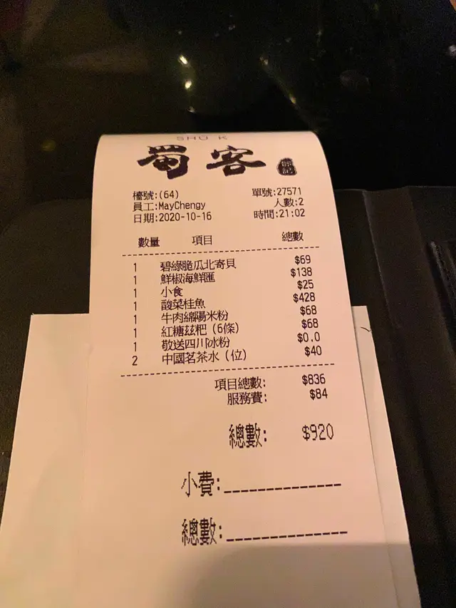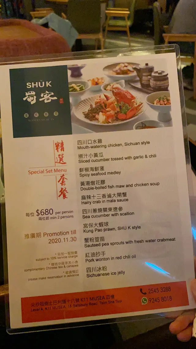 蜀客 (尖沙咀) 网址: https://s.openrice.com/QrLS04Cy4W0 地址: 香港尖沙咀梳士巴利道18號Victoria Dockside K11 Musea 4樓412-413號舖 电话: +852 25453288