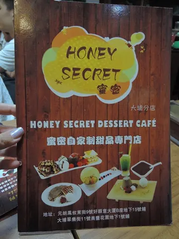 秋凉是做运动的好季节到附近运动场来个一小时慢跑一心减肥点知。。。。。。指定动作吹吹水食甜品通常会去蜜密款式多又新地方够宽敞有时候朋友喜欢坐 outdoor又有另一番滋味坐低首先叫杯冰凉饮品先鲜芒果冰 24浓浓的芒果香味饮得出新鲜生果味道十分清新少少甜味道适中我都几钟意比较少甜我欣赏呢个mango ice下次可以再饮轻轻吸一口鲜芒果冰已经透心凉Honey Secret 98名字是跟大埔蜜密的英文名 honey secret一样的一定是招牌 hero甜品吧看图已非常吸引啦就点了试一下上台时十分期待配生果粒粒+呍呢嗱雪糕非常丰富用糖胶造了一个漂亮的波波波波内盛著酥皮朱古力粒粒波波底下还有朱古力浆可以点酥皮朱古力粒粒呢double chocolate朱古力 fans 不要错过总括来说甜品卖相靓设计有心思味道好比传统糖水精美真的好满意呢是taipo 不错的选择