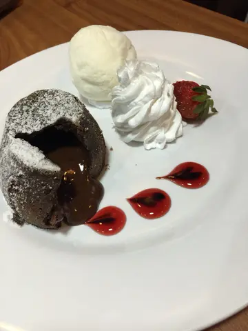 Honey secret用焦糖丝打成一个球状,入面藏有热辣辣朱古力一口酥,将焦糖丝拼一口酥吃脆卜卜加上入口爆开的一个酥确实味美!加上云呢拿雪糕球,一黑一白,一冻一热嘅配搭可见用心制作鲜芒果冰鲜芒果加冰搅出来的芒果冰,充满芒果味打出来的沙冰幼滑,间中发现少许芒果像!并不太甜容易入口!Mocha心太软一般心太软都系用朱古力馅,今次就用了Mocha朱古力外层蛋糕配上mocha将味道加强,喜欢饮咖啡食朱古力嘅人一定钟意!
