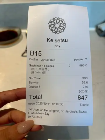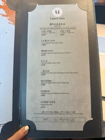 我地又去左铜锣湾一间高质日本寿司料理餐厅食lunch呢间既lunch set 都真系好鬼抵食,食材又新鲜,而人均消费都只系~$500我地坐咁耐都系keep住坐满人就知性价比有几高啦🤭我地叫左两个 $498 Lunch Set就食到11贯手握寿司+手卷,仲有前菜同甜品等前菜系合桃鱼干仔&豆腐野菜沙律(豆腐好滑溜)深海池鱼 ✨肥厚爽身、油脂香味浓九绘班鱼✨肉质比较实,好有咬口帆立贝✨肉质肥美鲜甜石垣雕✨配乌鱼子间八✨ 肉质弹力十足白鱿鱼✨口感爽甜,配明太子紫菜酱,海胆✨ 系我至爱🤤超鲜甜一d都唔腥池鱼✨ 鱼鮨丰富粒贝✨原来即系海螺,扫上柚子汁,食落好清新烧拖罗筋✨ 油脂丰富,入口即溶拖罗蓉配米通✨米通脆卜卜,轻轻烧过香味就更出,拖罗蓉洒上芝麻,满口肥美甘香食完之后每份 lunch set 仲有鱼汤蒸蛋配樱花虾 & 海鲜清汤滑溜既蒸蛋用上鱼汤去蒸更加鲜味最后食埋个菠萝雪葩 & 曲奇雪葩令成餐饭变得好完美🥰萤雪📍铜锣湾渣甸街66号亨环7楼…查看更多