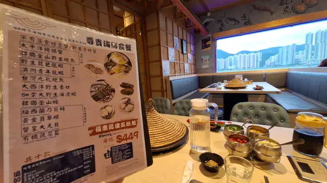 位於⛴️鯉魚門三家村渡輪碼頭嘅🦀蟹仙野生海鮮蒸氣石碢,享全海景🌃,睇住靚靚嘅日落景色🌇嘆高質海鮮,都幾寫意🥰!🦀尊貴海鮮套餐 折後 $477/位餐廳主打蒸海鮮,呢個套餐包含9款優質海鮮,大部份連醬料都唔洗,齋食個鮮味已經好正!蒸鍋全程由店員操作,服務Good!🪸秘製原隻南非乾鮑以中式方法炆製嘅乾鮑,入晒味!🦐加拿大野生海虎蝦海虎蝦肉質彈牙,鮮味突出!🐚黃金翡翠螺螺肉爽身帶甜,唔錯!🪱韓國釜山野生鰻魚野生鰻魚入口鮮味,滲出油香!🦪韓國釜山蠔大大隻嘅釜山蠔,一咬爆汁,蠔味濃厚!🪸蟹皇大元貝加入自家製蟹皇醬嘅大元貝,肉質爽甜,個肝勁肥美!🪸大西洋野生青口野生青口水嫩清甜!🦞澳洲青年龍蝦好多膏嘅龍蝦,龍蝦肉爽口鮮美,龍蝦頭膏鮮味濃郁,正!🦀罕有菲律賓野生藻食奄仔蟹綠黃交錯嘅蟹膏多到滿瀉,富有先甘後甜嘅獨特風味!而蟹肉就極為鮮甜可口,令人一試難忘!🥬有機蔬菜籃|粥底|糖水最後嘅粥底,吸收晒咁多海鮮嘅精華,唔錯!…查看更多