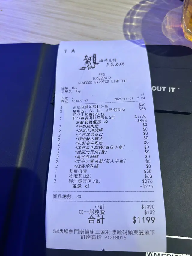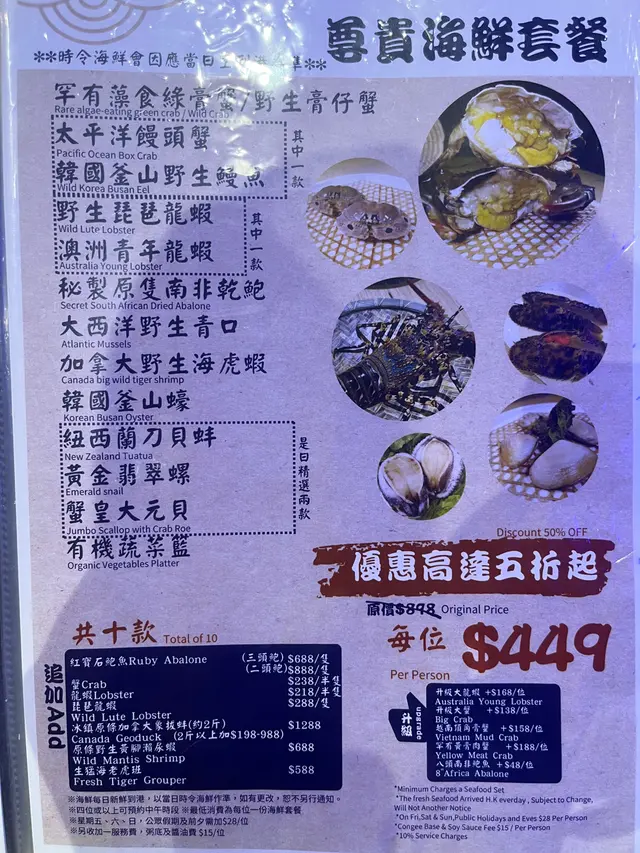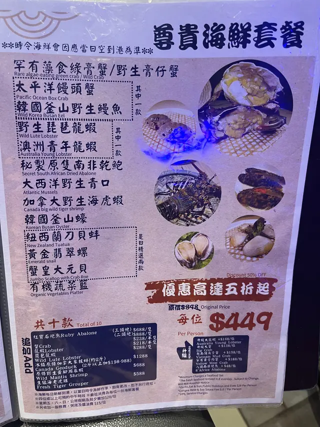 「尊貴海鮮套餐」:嘩!成枱擺到滿一滿,睇見都興奮!有機蔬菜盤:食咁多海鮮都要平衡下,啲菜翠綠爽甜,索晒啲海鮮精華甜到不得了。加拿大海底蝦:大大隻,蒸完蝦殼紅噹噹,蝦肉結實彈牙,鮮味係咁標出嚟。大西洋活青口:隻隻都咁肥美,一啖一隻,海水味好濃,又唔會有一絲沙,正!韓國釜山鰻魚:魚肉肥美又唔腥,皮層充滿膠質,蒸完油香四溢,滑溜到呢~秘製南非乾鮑:哇,呢個係重頭戲!鮑魚本身已經好厚身,加上秘製醬汁咁一蒸,入味之餘又保持到溏心嘅口感,咬落去軟糯彈牙,個鮑魚味濃到化唔開!澳洲青年龍蝦(半隻):雖然係「青年」,但都好多肉!鉗肉有成隻匙羹咁大,啖啖肉鮮甜到爆炸,龍蝦膏嘅濃香仲係個口入面迴盪緊。黃金翡翠螺:個名改得啱,真係好似翡翠咁綠!用牙籤「吱」一聲拮出嚟,口感煙韌又爽脆,鮮味十足!韓國大元貝:真係「大」元貝!貝柱厚肉,裙邊爽口,蒸完之後佢自己流出嚟嘅汁水就係最天然嘅調味,鮮甜到不得了!罕有大黃電蟹(半隻) 同 韓國珍珠蠔:蟹肉飽滿鮮甜,蠔身脹卜卜,蒸完都唔會縮水,一啖食落去,海洋嘅味道瞬間爆發!「椰汁燉雪燕」:食完咁多重口味嘅海鮮,呢個甜品嚟得啱啱好!椰香好清甜,雪燕滑溜溜,滋潤又解膩,成個口都充滿香氣,完美作結!總而言之,成餐飯就係一個「鮮」字行頭,由淡食到濃,每一啖都係海洋嘅精華,滿足到癲啊!…查看更多