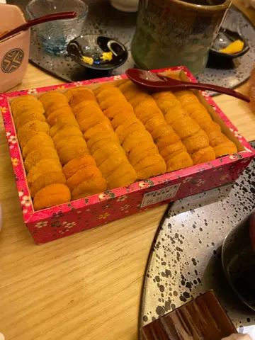 期待已久的一次食行,身边朋友去过嘅都力赞,话钟意食蟹一定要去,咁啱又结婚周年庆,便打电话预约,去到店舖,地方不大,有两大台(四人)及两细枱(二人),上方有只巨型的金蟹,十分有气势,坐下来一会便拿出当天新鲜空运到港的北海道食材给我们观看及讲解,因为预约订枱时已经订了厨师发板,便期待厨师制作什么菜式给我们吧。第一款是真鲷鱼奖手搞面及绿茶鲈鱼手搞面配犒虾,很清新开胃的味道,柚子醋配合得非常好,连粒冬菇都非常之味😋第二款是牡丹虾刺身配熟长脚蟹,虾头羔汁做底,上面是牡丹虾籽,牡丹虾非常弹牙及鲜甜,配合虾羔汁及虾籽,双重美味口感😁第三款是纪州备长炭烧长脚蟹,呢个唔驶讲,啖啖超满足蟹肉😋第四款是紫苏叶香鱼春卷配炸赤蟹,香鱼本身都好钟意食,赤蟹仔未试过又几得意成只咁食,重会拎个鱼缸仔出嚟比你睇吓生猛爬爬下嘅赤蟹,好得意😆第五款是盐烧鲍鱼,上面是北海道毛蟹羔汁,我未食过咁软滑嘅饱鱼,连我箍紧牙嘅老婆都话好易咬好淋又爽滑,不错👍🏼第六款是拆肉北海道毛蟹配唔记得咩名嘅海藻,我自己比较喜欢毛蟹一疏疏爽少少质感及甜的味道,快速清碟😋第七款是主角北海道海胆拌长脚蟹肉及毛蟹肉三文鱼籽饭,份量比想像大,而蟹肉更比饭多,捞埋咁新鲜嘅海胆,鲜味大满足,每人两碗已经饱到上心口咁滞😋😋甜品是北海道夕张蜜瓜,好好食真系😆之后仲送左一只甜品船比我哋,贺我哋结婚周年庆🥰🥰,甜品船上有夕张蜜瓜,南瓜蛋糕,朱古力蛋糕,雪糕,草饼及布甸,样样都好好食。今餐食得开心又满足,多谢厨师野田精心制作😋😋,下次试吓佢嘅怀石料理先…查看更多