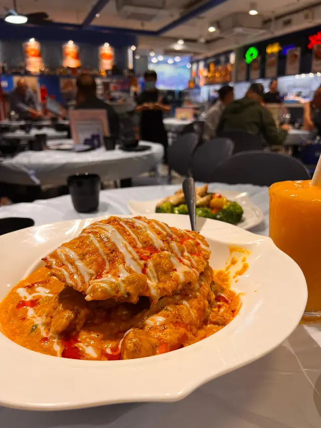 小編一向都鍾意食海鮮,今次黎到幾出名既鴨脷洲街市試下,有唔少魚缸養住啲海鮮,全部都好新鮮🤩 而且估唔到大排檔都可以結合泰菜、中菜小炒同潮式打冷,碟頭幾大,全部都有風味同穫氣🔥😋 裝修以海洋🌊既藍色為主,明亮闊落又乾淨,平日都一樣咁多人黎😌 幾近海洋公園🎢,而且仲有房可以包場,要聚餐都幾方便👍🏻 (5 😍 係滿分,🤩係半分) 招牌白胡椒蟹 (大蟹) ⚪️🦀 - $628 (好味指數:😍😍😍😍)黎到食蟹🦀既地方就試下佢地既招牌,啲蟹🦀幾大隻,用鐵板既形式上,店員會即場喺你面前淋汁,炸炸聲幾有feel🤩 啲蟹🦀有處理過,唔會好難拆肉~ 而且肉既份量幾多,軟綿鮮甜,配埋微辣🌶️有少少嗆鼻既白胡椒⚪️做調味就更加香口👍🏻 金沙黃金蝦 🟡🦐 - $118 (好味指數:😍😍😍😍🤩)跟住試下黃金蝦 🟡🦐,蝦🦐既表皮均勻咁裹滿左蛋黃汁🟡,有鹹香同油香得黎起沙,令到啲蝦🦐更加惹味🤤 而且炸得夠🔥,表皮酥脆,連個頭都食到,裡面既蝦肉🦐彈牙鮮甜,每一啖都幾正😋 蝦膏啫啫唐生菜煲 🔥🦐🥬🍲 - $88 (好味指數:😍😍😍😍😍)上枱既時候真係炸炸聲,果然係啫啫煲😜🍲 難得既係佢地揼本用蝦乾🦐而唔用蝦米,比較有咬口、有鹹鮮味同埋唔會有難咬既硬殼,配埋香濃醇厚既蝦醬🦐同埋香口既豬肉去煮生菜🥬,生菜🥬依然翠綠爽脆,索晒個汁既精華,真係好餸飯🍚🤤 芒果糯米飯 🥭🍚 - $68 (好味指數:😍😍😍😍🤩)最後有點少得飯後甜品呢,叫左芒果糯米飯🥭🍚,有齊清香既紫米同原味,質感煙韌軟糯,配左清新香甜既椰汁🥥所以唔會漏,配埋芳香馥郁、酸甜多汁既芒果片🥭好夾同好食😋聽講好快仲會有中秋set ~期待~好味指數:😍😍😍😍🤩推介指數:😍😍😍😍🤩…查看更多