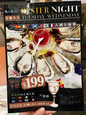 全港有多间分店的蚝吧,生蚝由法国、澳洲、爱尔兰、南非及美国等地新鲜空运到港;另有供应多款海鲜、刺身及肉类的西式料理,是和亲友共享美食的好地方。