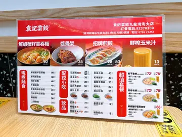 偶然经过九龙湾,见到呢间袁记云饺子店新开张,门口有落地大玻璃,见到云吞水饺系店内员工即场包,好吸引,忍唔住入去试吓😗水饺云吞款式选择多,仲有唔同嘅小食同配菜。各款水饺可以选汤饺或者拌饺;汤有广式鲜汤、激酸激辣汤两款选择;拌饺有蒜香干拌、红油干拌、花生酱干拌、剁椒干拌、网红混酱5款选择。🦐鲜虾蟹籽云吞 配广式鲜汤云吞皮够薄,馅料足料,有大大粒爽口鲜虾,蟹籽同猪肉馅,口感丰富。🌽玉米虾仁饺 配蒜香干拌鲜虾嘅鲜甜味同玉米粒嘅清新味道好夹,个人好钟意蒜香干拌,钟意蒜味嘅朋友一定要试下🧄🍄🟫冬菇马蹄鲜肉饺 配网红混酱冬菇嘅香气配上清脆嘅马蹄,加上鲜肉同蔬菜嘅比例啱啱好,层次丰富而不腻;网红混酱系混合咗红油、花生酱同剁椒干拌,花生酱好幼滑,加上红油香、剁椒辣,味道好特别,值得一试👅☕️捷荣港式奶茶原来呢度奶茶系用捷荣奶茶,入口醇厚甘甜,口感圆润顺滑,茶香同奶香恰到好处而唔会腻👍…查看更多