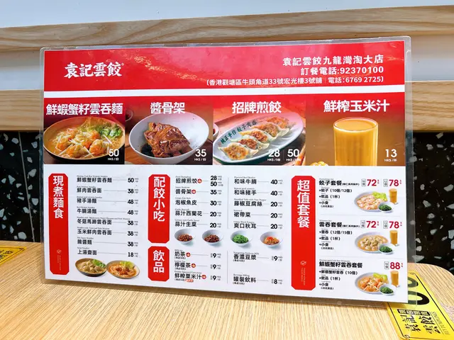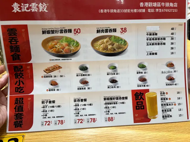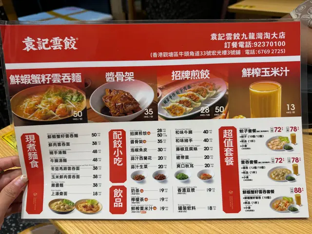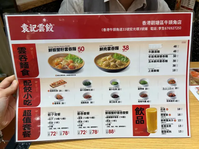 袁記雲餃 (牛头角) 网址: https://s.openrice.com/QrLS0MKOD00 地址: 香港牛頭角牛頭角道33號宏光樓地下3號舖 电话: +852 67692725